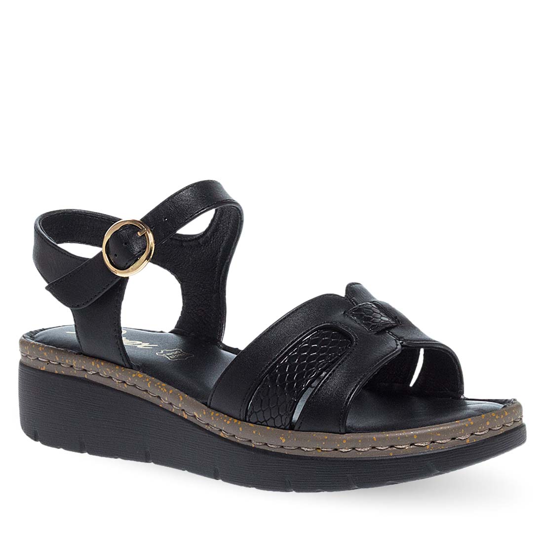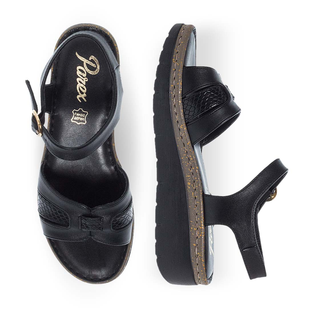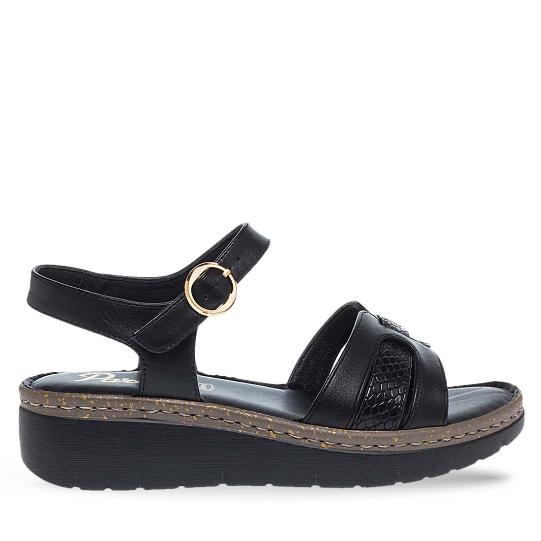 Γυναικεία πέδιλα Parex. Ακολούθησε την τάση της εποχής φορώντας αυτά τα γυναικεία πέδιλα από την νέα συλλογή της Parex σε μαύρο και ταμπά χρώμα. Φαρδιά φάσα στο μπροστά μέρος και λουράκι που πιάνει και στο πίσω μέρος του ποδιού και κλείνει με αγκράφα στο πλάι. Συνθετικό δέρμα εξαιρετικής ποιότητας. Μαλακό δερμάτινο πέλμα και σταθερή σόλα με τακούνι πλατφόρμα. Mια τέλεια καλοκαιρινή επιλογή για να φορεθεί από το πρωί ως το βράδυ.