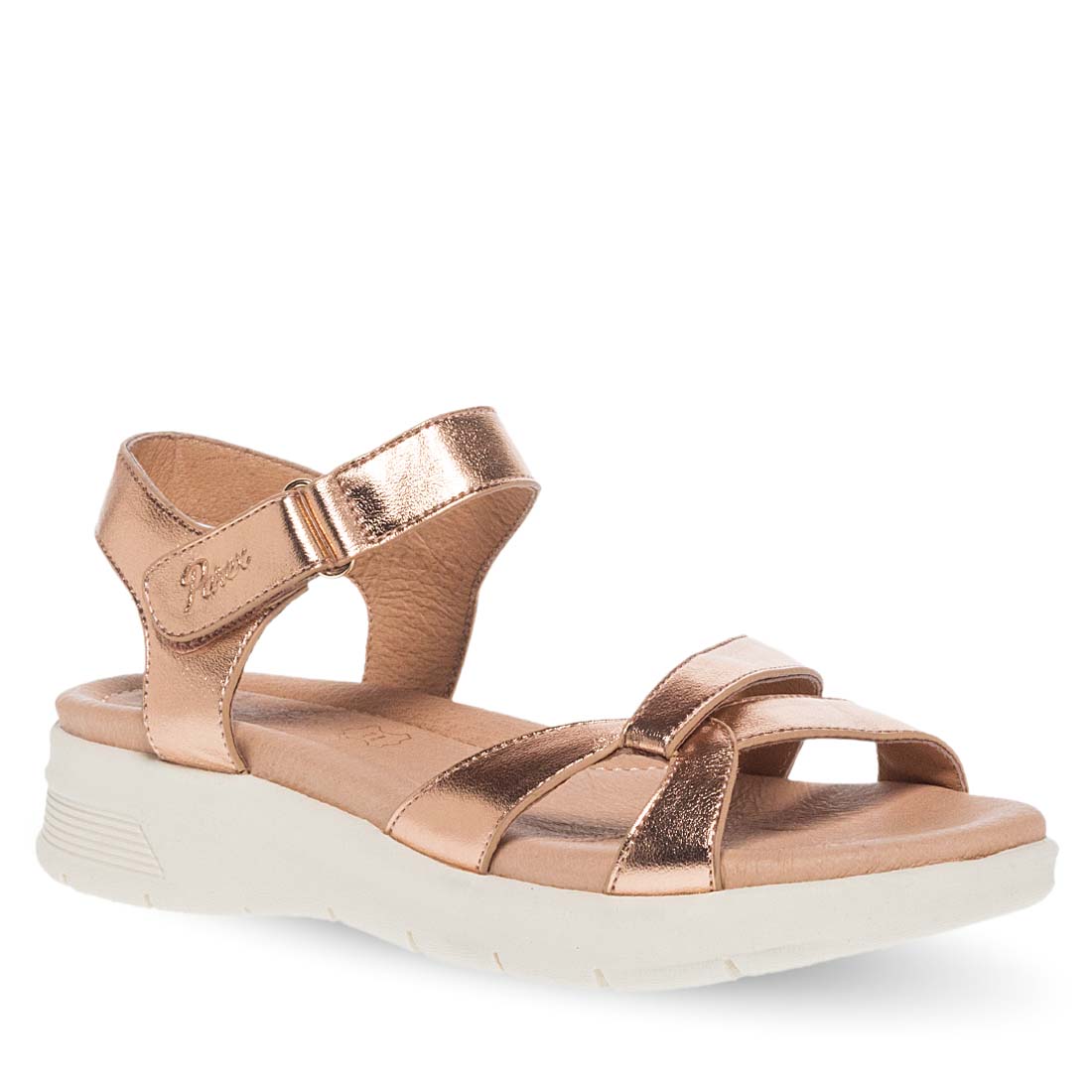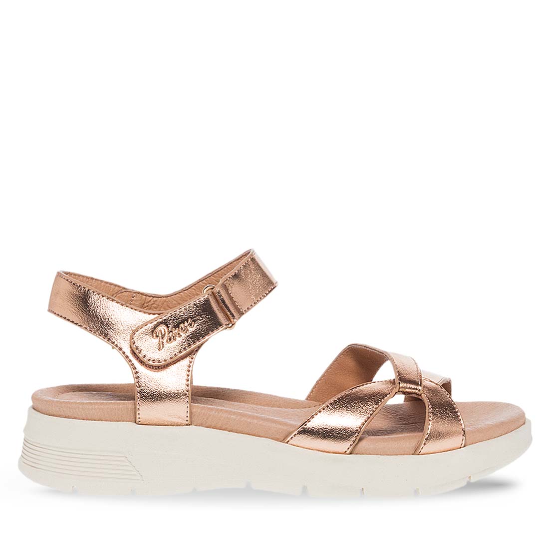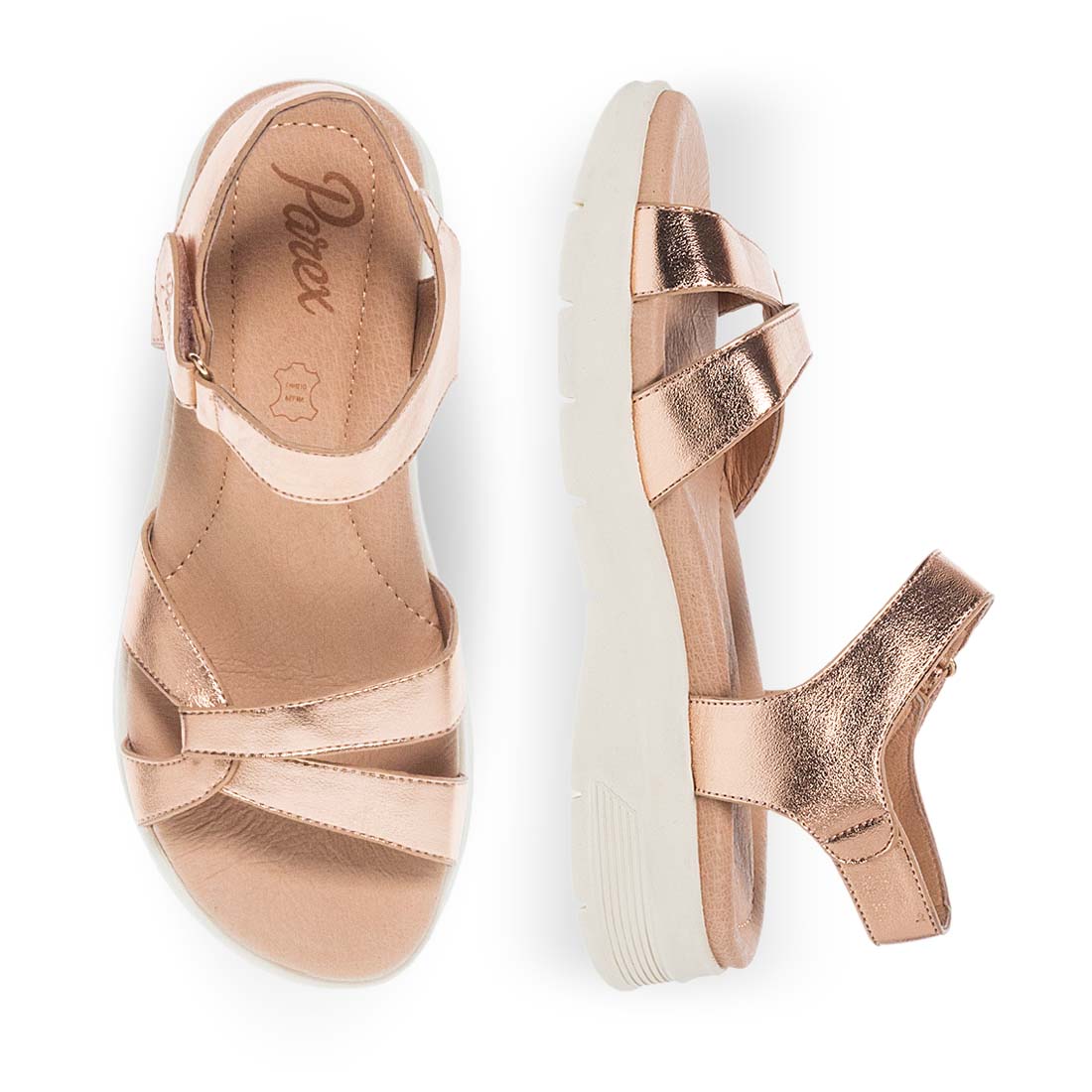 Γυναικεία πέδιλα Parex. Μοντέρνα γυναικεία πέδιλα από την νέα συλλογή της Parex εμπνευσμένα από τις τελευταίες τάσεις της σεζόν. Διαθέσιμα σε μαύρο και ροζ χρυσό ώστε να επιλέξετε αυτό που ταιριάζει περισσότερο με την γκαρνταρόμπα σας. Κλείσιμο με velcro λουράκια στο μπροστά μέρος του ποδιού και στον αστράγαλο. Διαθέτουν μαλακό δερμάτινο πάτημα και σταθερή ανθεκτική σόλα. Γυναικεία πέδιλα Parex που ξεχωρίζουν για την υψηλή αισθητική και το στιλ τους.