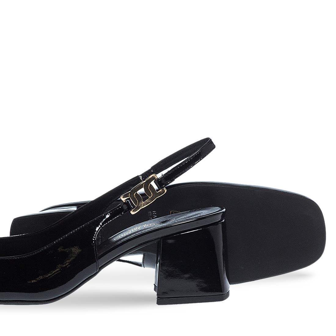 Γυναικεία κλειστά πέδιλα Maison Minrelle σε στιλ γόβας . Ακόμα μια άνετη επιλογή για το καθημερινό σας στιλ είναι αυτά τα επώνυμα γυναικεία πέδιλα από λουστρίνι. Διαθέτουν στρογγυλή μύτη στο μπροστά μέρος και χρυσή λεπτομέρεια. Πολύ μαλακός πάτος εσωτερικά για να προστατεύει τα πόδια σας. Με μεσαίο ύψος τακουνιού για καθημερινή χρήση.
