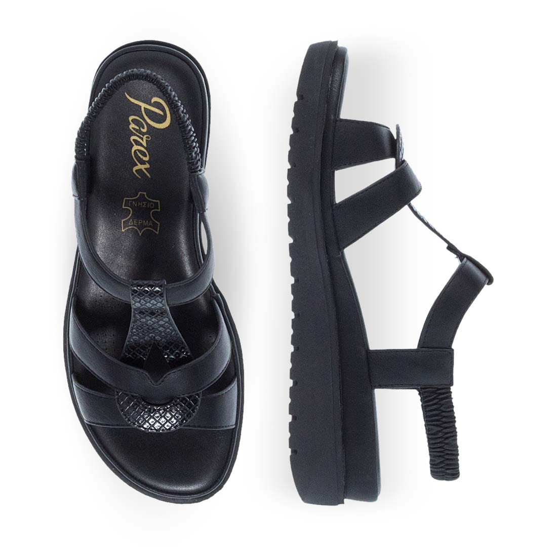 Γυναικεία πλατφόρμα Parex από συνθετικό δέρμα εξαιρετικής ποιότητας. Διαθέτει ελαστικά λουράκια και μεσαίο ύψος τακουνιού. Άνετη και ιδανική να φορεθεί στη καθημερινότητα σας. Μια καλοκαιρινή πλατφόρμα σχεδιασμένη με την χαρακτηριστική αισθητική και ποιότητα της Parex.