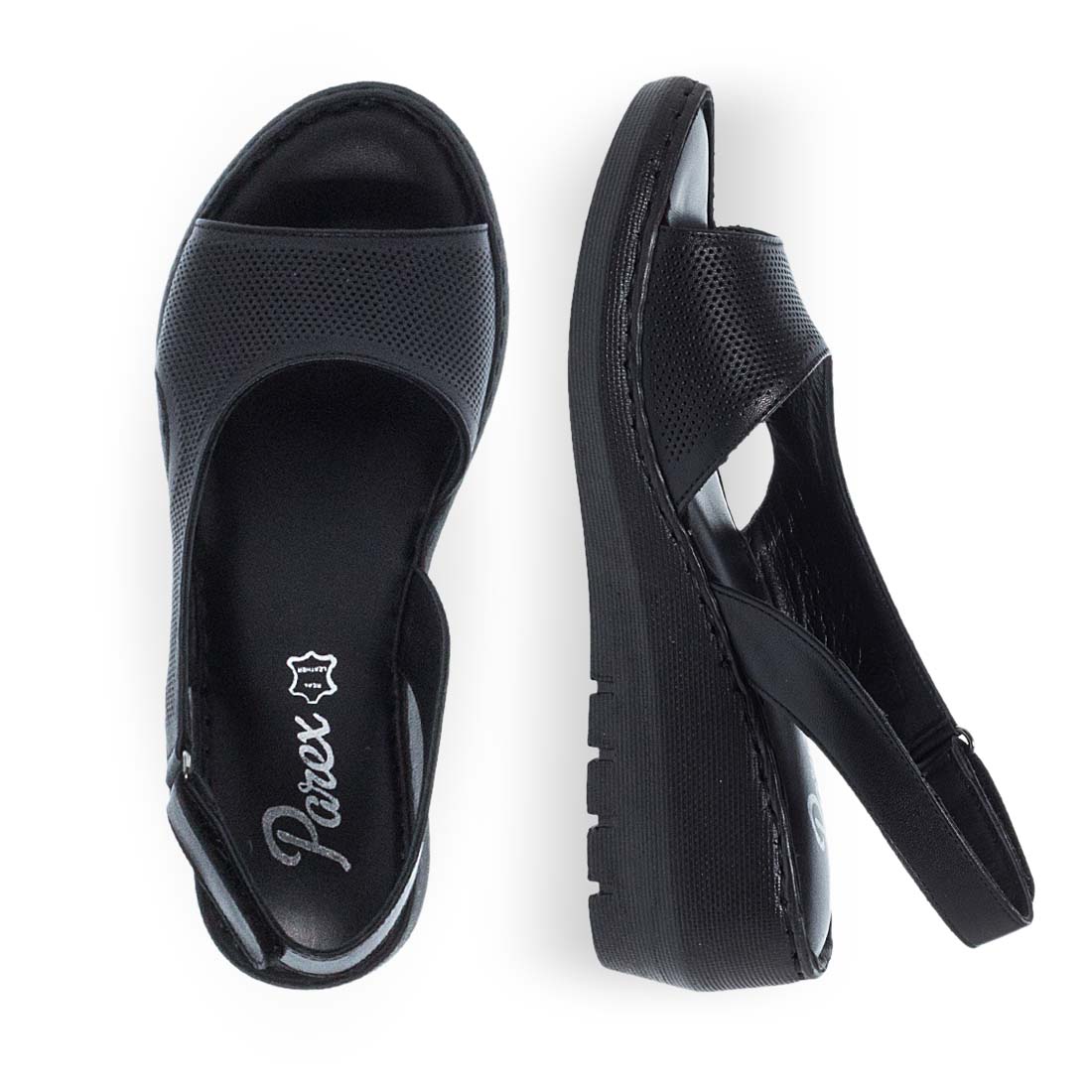 Γυναικείες πλατφόρμες Parex. Διαχρονικές και άνετες δερμάτινες πλαρφόρμες από την Parex που θα ολοκληρώσουν κάθε εμφάνισή σας. Ανοιχτές στο μπροστά μέρος με λουράκι στο πλάι για σταθερά βήματα,κλείσιμο με velcro αυτοκόλλητο. Μαλακός δερμάτινος πάτος και σόλα σταθερή τύπου πλατφόρμα. Αυτές οι πλατφόρμες διαθέτουν τα χαρακτηριστικά που χρειάζεται ένα άνετο σχέδιο για χρήση καθ’ όλη τη διάρκεια της ημέρας.