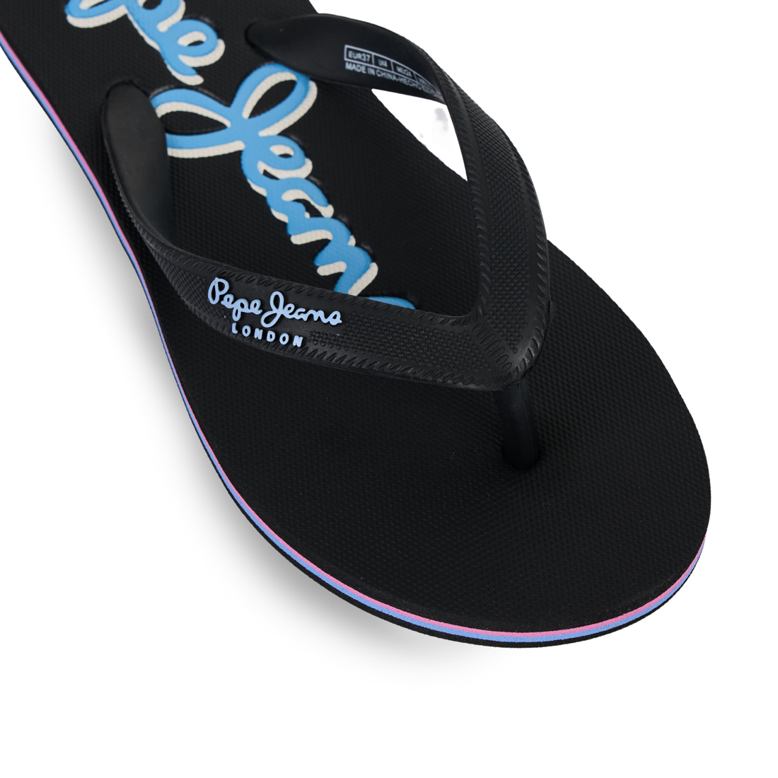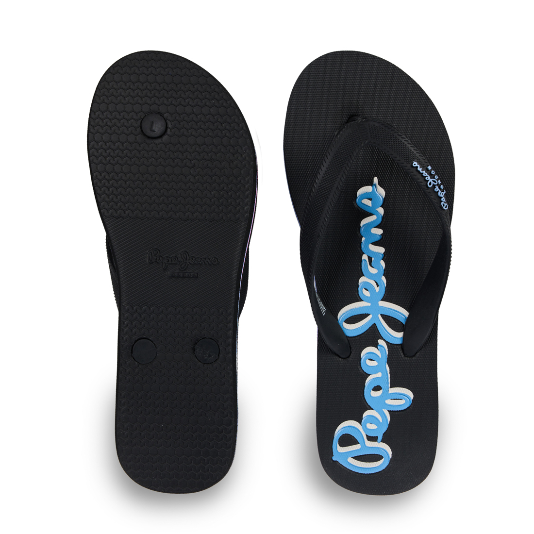 Γυναικείες σαγιονάρες θαλάσσης Pepe Jeans. Αυτές οι γυναικείες σαγιονάρες θαλάσσης από την Pepe Jeans είναι ακόμα μια άνετη επιλογή για το καθημερινό σου στιλ.Κλασσικό σχέδιο σε μαύροχρώμα με το λογότυπο στο δίχαλο και στο πέλμα να ξεχωρίζει. Αναπαυτικός πάτος και σταθερή ευλύγιστη φλατ σόλα. Φόρεσε αυτές τις γυναικείες σαγιονάρες θαλάσσης από την καλοκαιρινή συλλογή της Pepe Jeans και ξεχώρισε αυτό το καλοκαίρι.