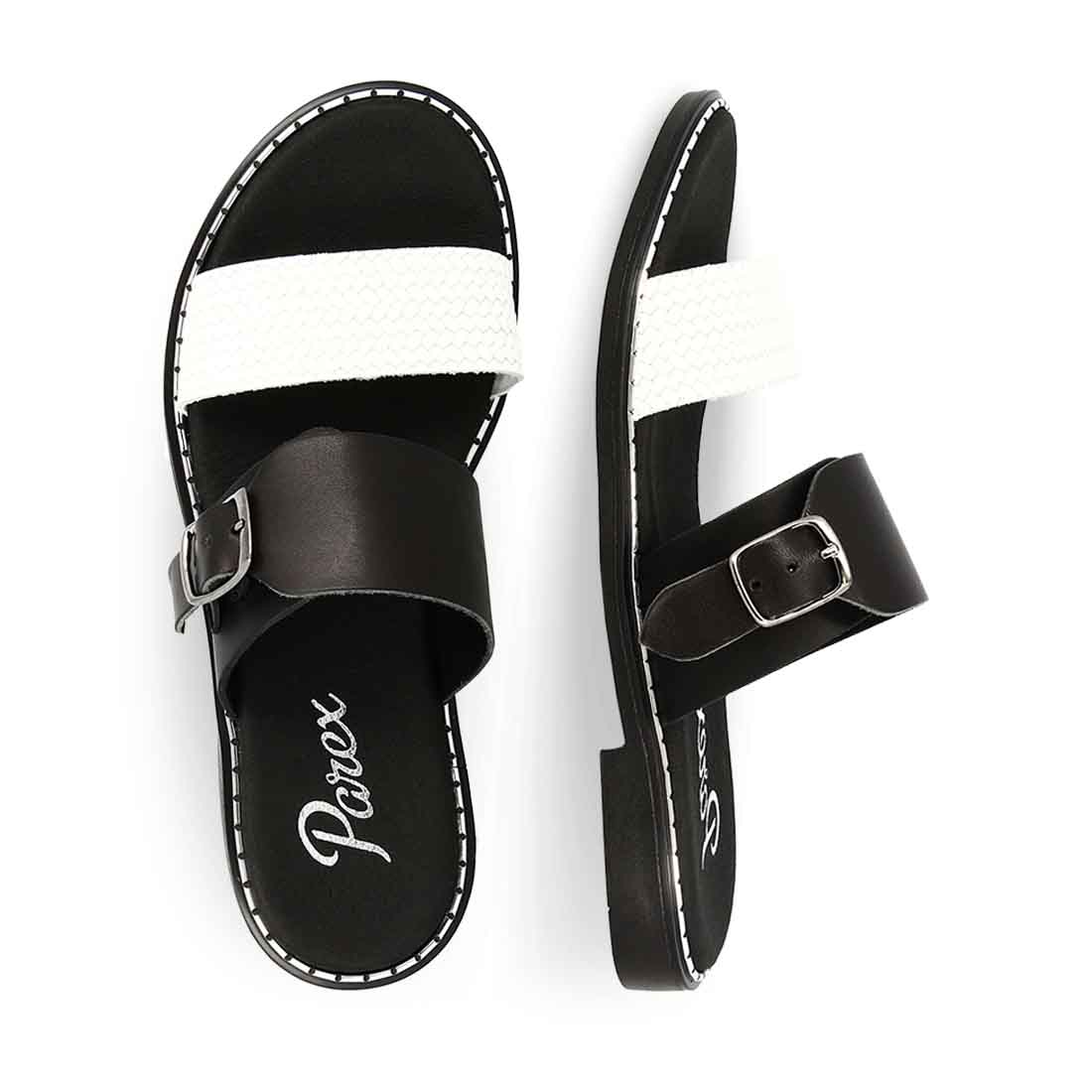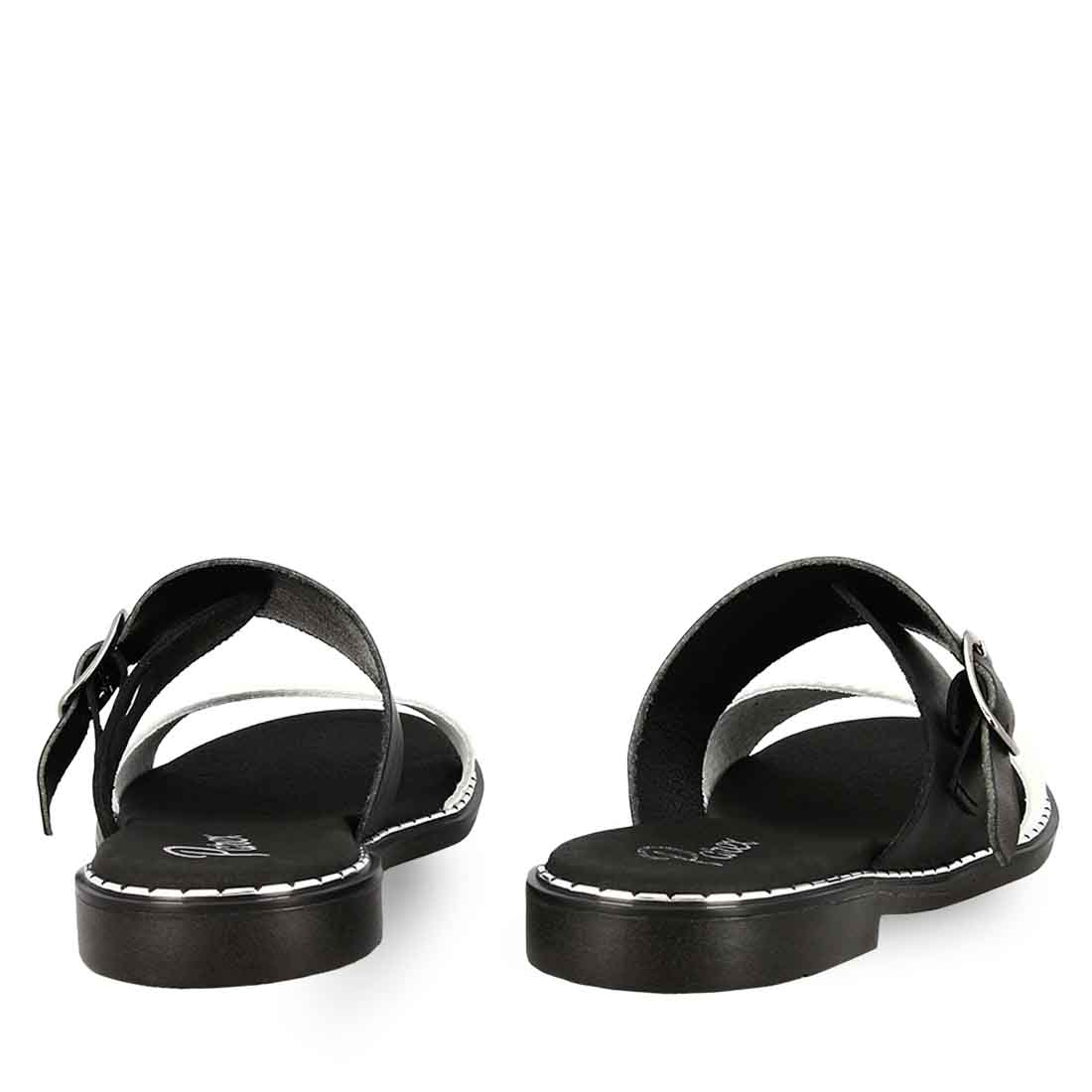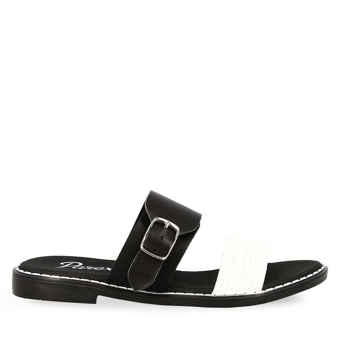 Black and White φλατ σανδάλι με σχέδιο που αναδεικνύει κάθε πέλμα, ελληνικής κατασκευής από δέρμα αρίστης ποιότητας.