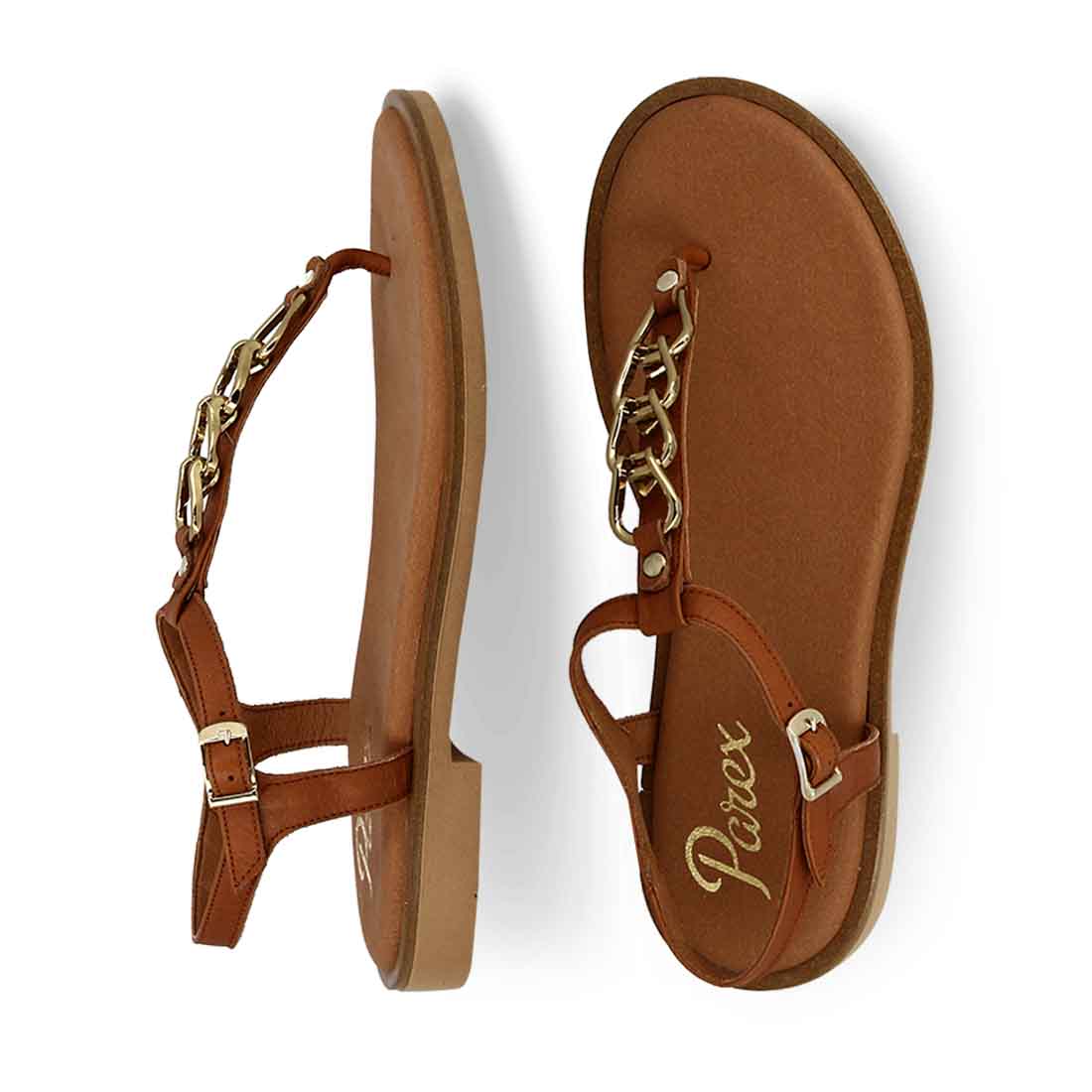 Φλατ δερμάτινα σανδάλια Parex, μια κομψή επιλογή που δεν πρέπει να λείπει από καμία γυναικεία συλλογή. Διαθέτουν Τ-bar λουράκι με αλυσίδα και έχουν λουράκι που κλείνουν με αγκράφα στο πλάι.