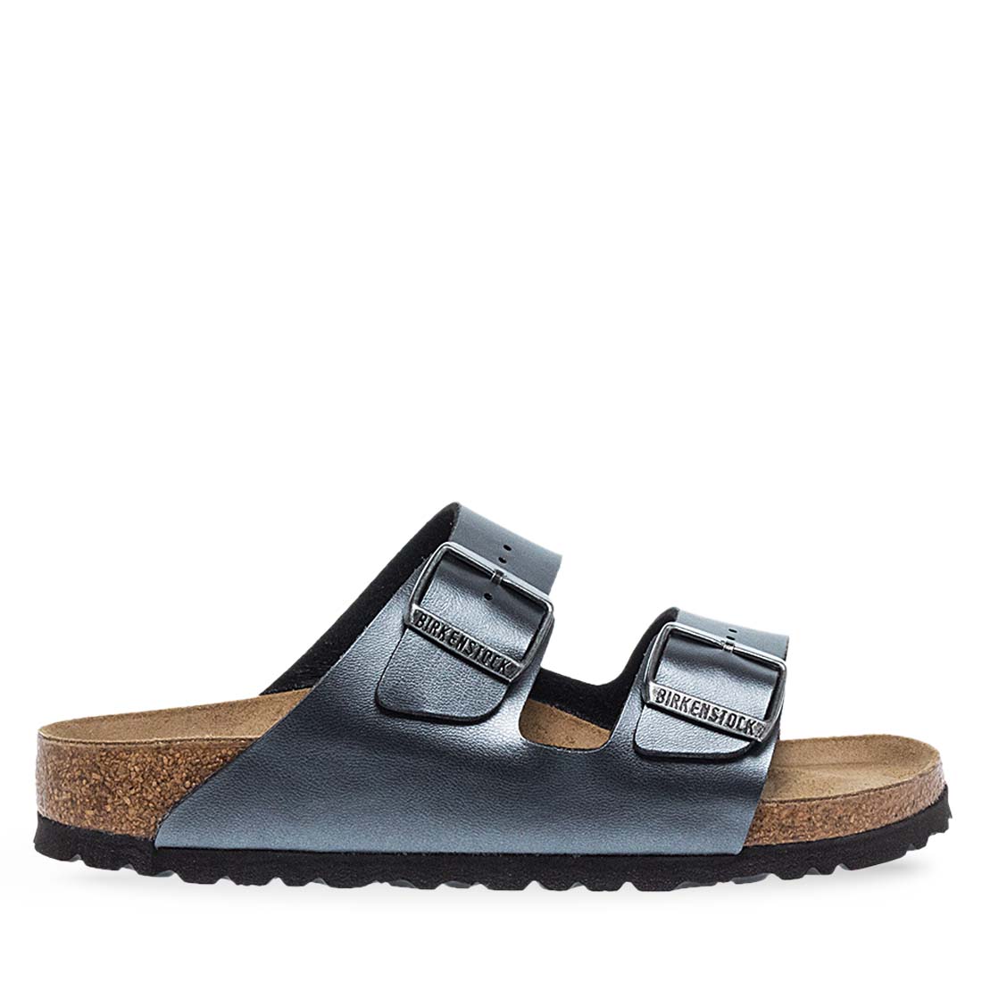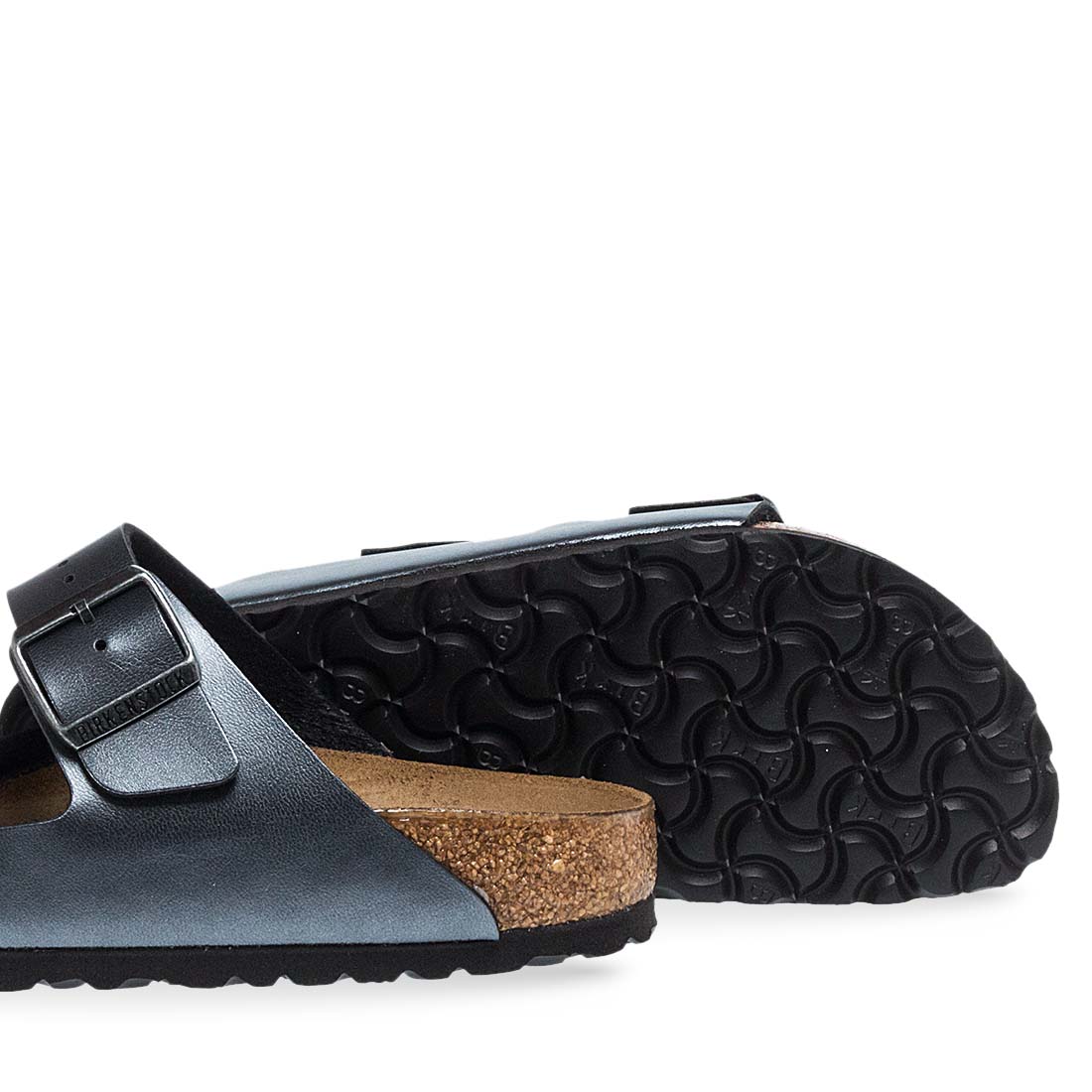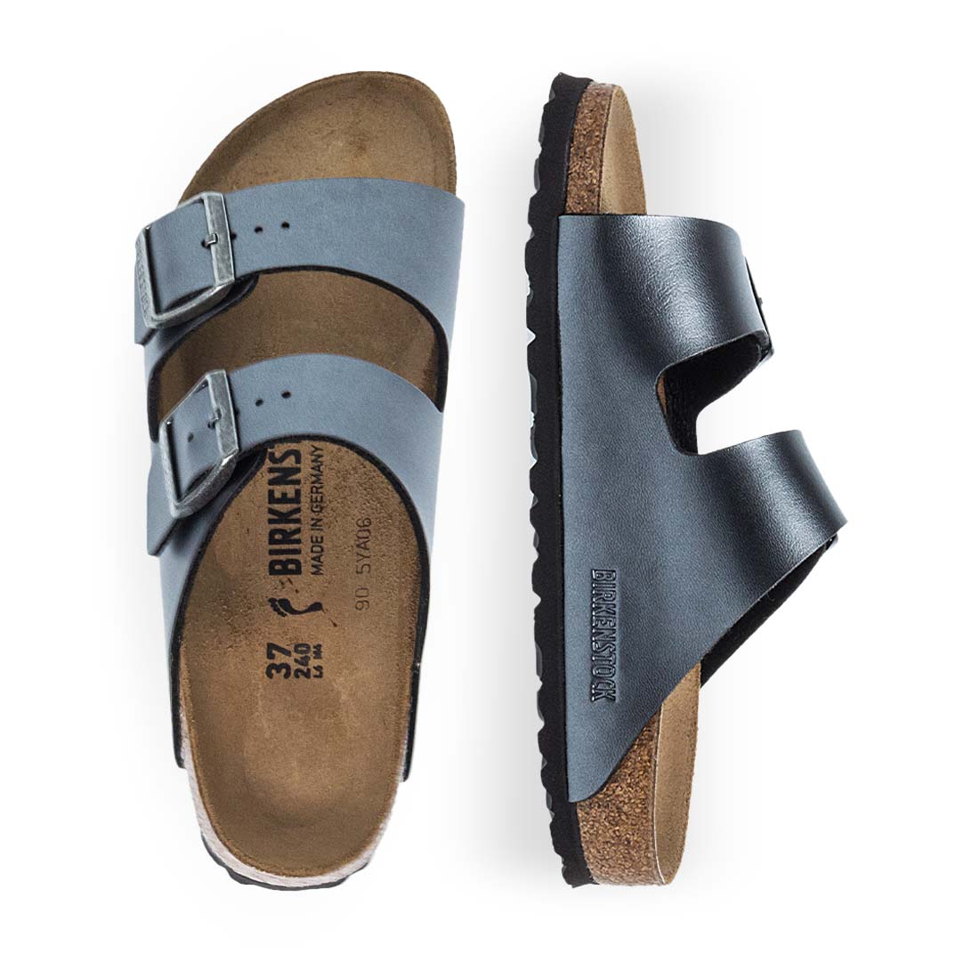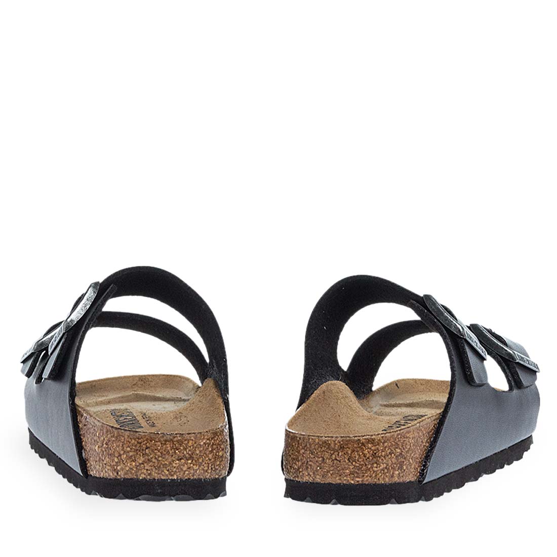 Γυναικεία σανδάλια από το brand Birkenstock. Σανδάλι Birkenstock με διπλό λουρί σε μαύρη-γκρι απόχρωση και μαλακό πάτο. Regular fit.