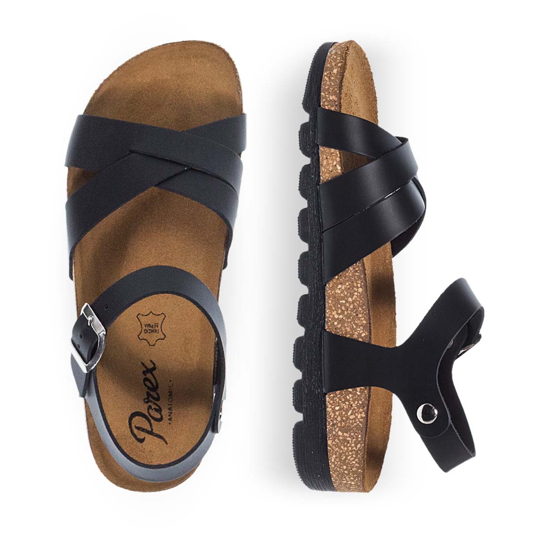 Γυναικεία σανδάλια Parex. Γυναικεία σανδάλια της εταιρείας Parex σε μαύρο και μπεζ χρώμα. Κλείσιμο με λουράκι χαμηλά στον αστράγαλο. Διαθέτουν χιαστί λουράκια στο μπροστά μέρος και πολύ μαλακό εσωτερικό πάτο. Ανθεκτική σταθερή σόλα. Μια επιλογή που μπορεί να αναβαθμίσει το look σας και να κρατήσει ξεκούραστα τα πόδια σας.