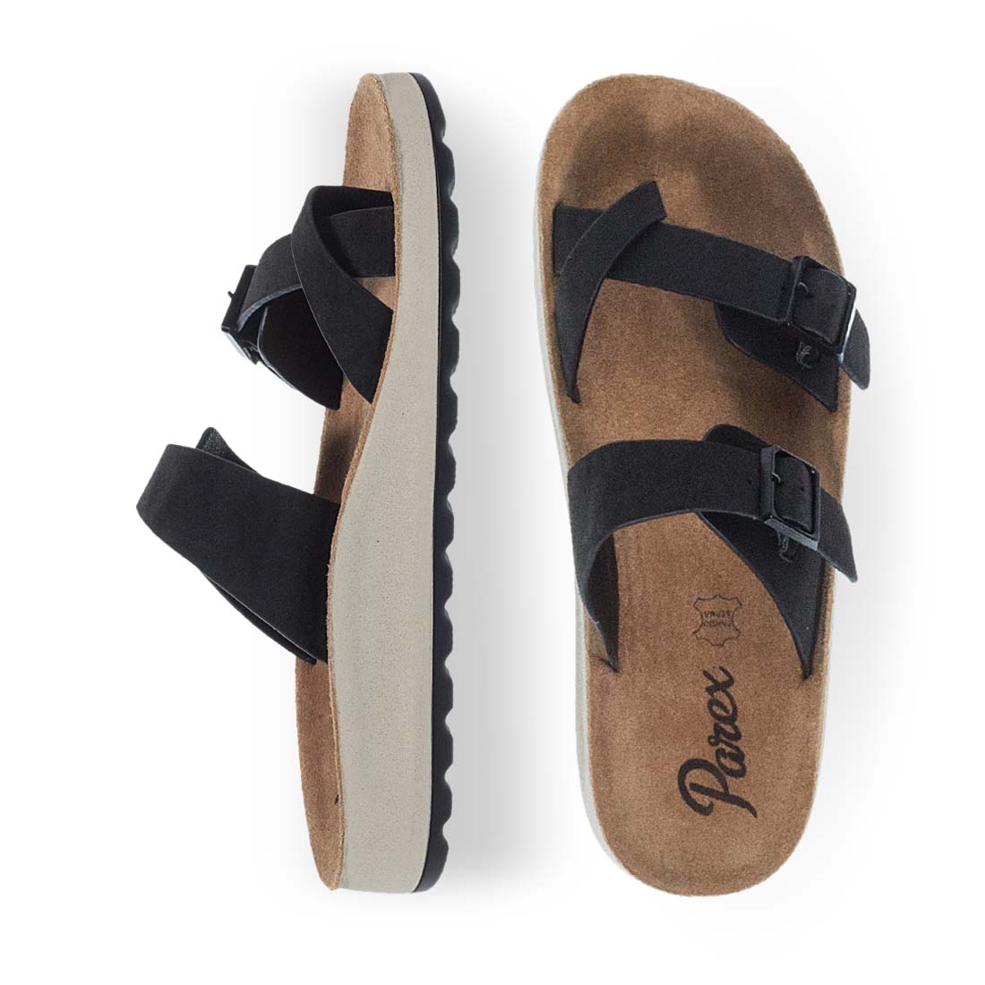 Άνετα σανδάλια Parex με εξαιρετικά μαλακό εσωτερικό πάτο, suede υφής. Διαθέτουν δίχαλο και λουράκια αγκράφα. Αυτά τα γυναικεία διαχρονικά σανδάλια δεν θα θέλετε να τα αποχωριστείτε και θα αναβαθμίσουν κάθε σας καλοκαιρινό outfit.