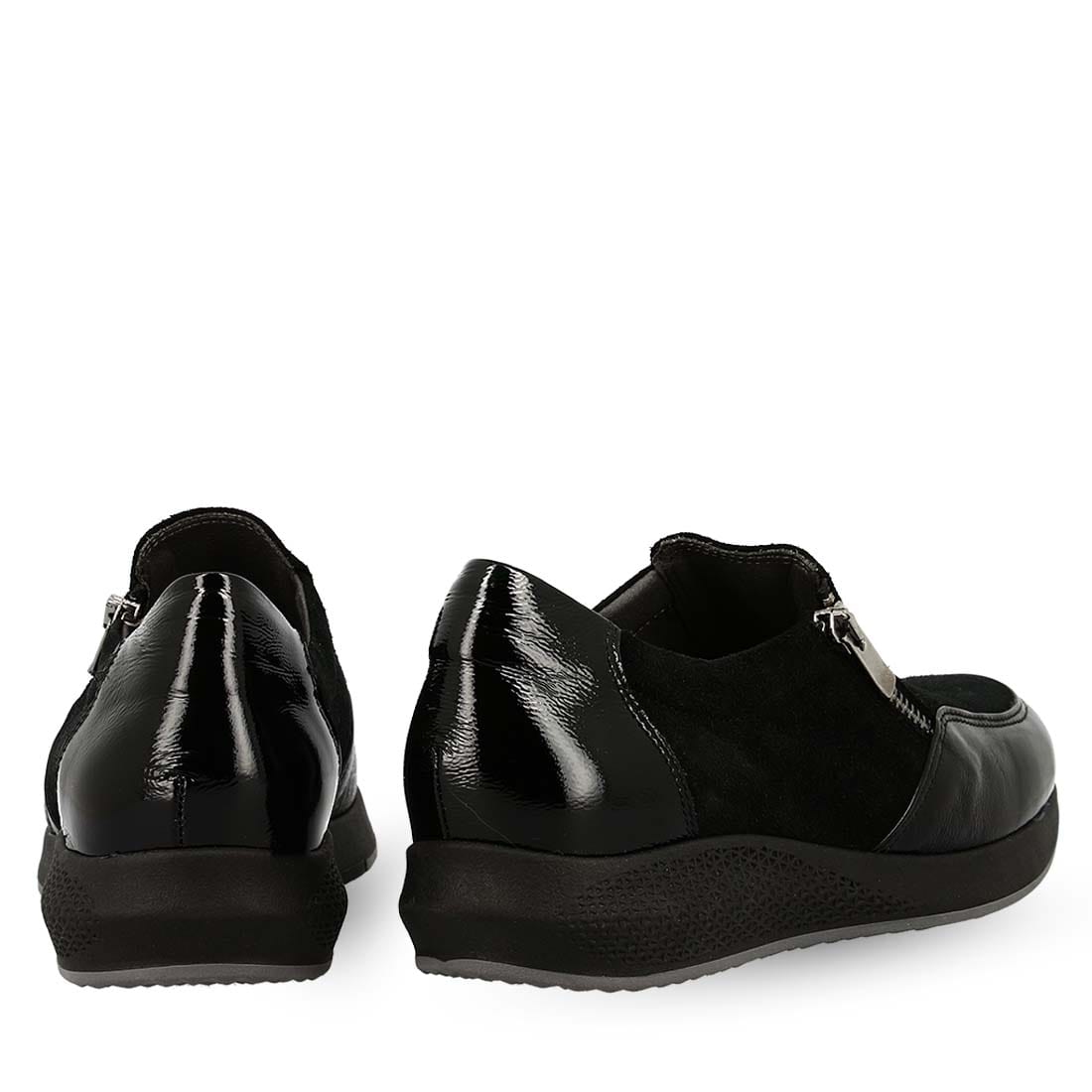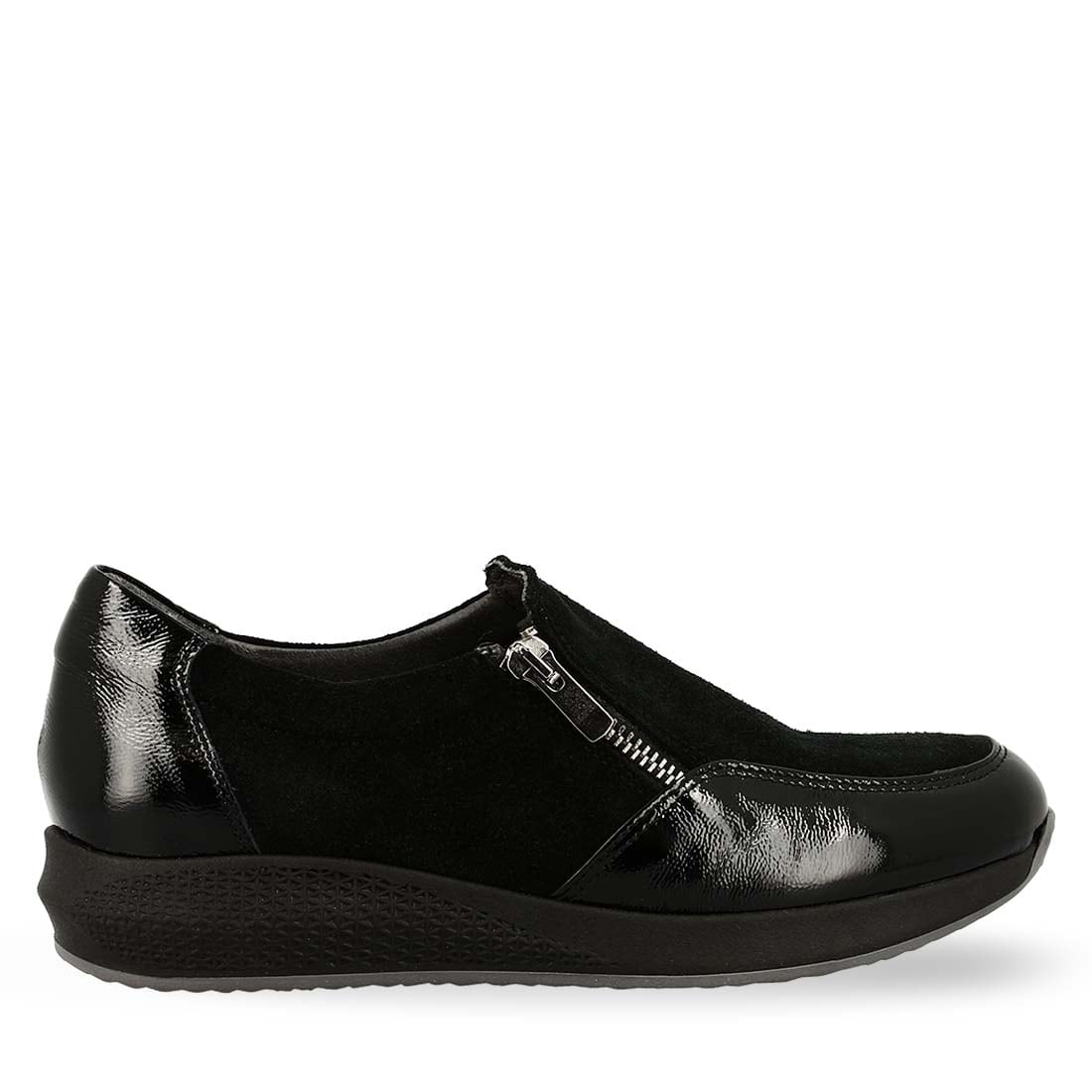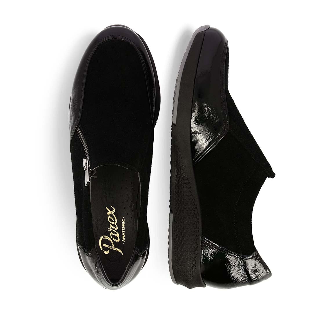 Γυναικεία δερμάτινα slip on παπούτσια Parex. Σχεδιασμένα από δέρμα άριστης ποιότητας σε συνδυασμό από suede και λουστρίνι. Έχουν λειτουργικό φερμουάρ στο πλάι για εύκολη εφαρμογή. Έχουν ανθεκτική, χαμηλή πλατφόρμα σόλα για να σας προσφέρει έξτρα πόντους στην καθημερινότητα σας.