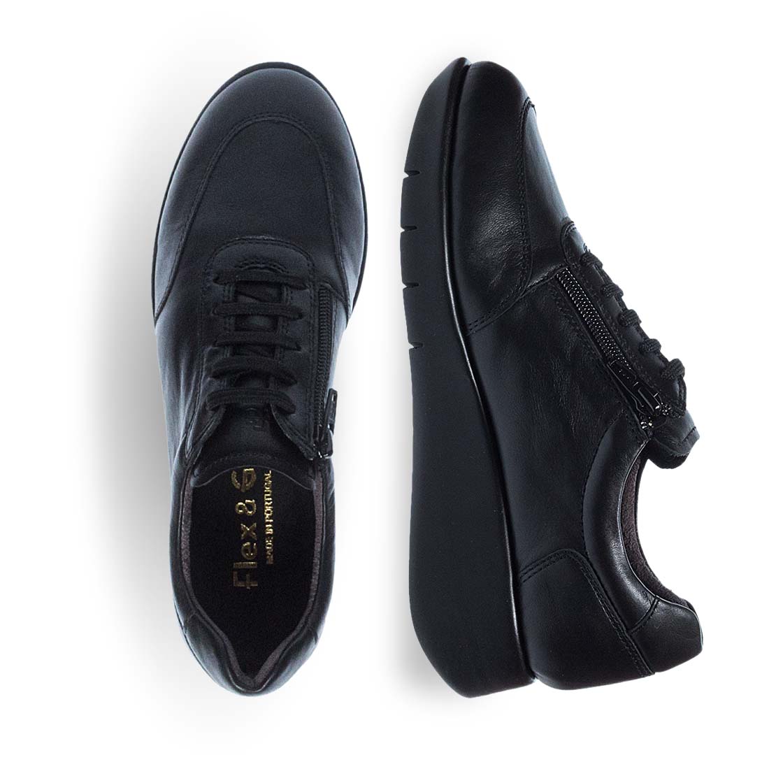 Μια αναπαυτική επιλογή για αυτή τη σεζόν είναι αυτά τα γυναικεία δερμάτινα sneaker Flex&Go σε καφέ και μαύρο χρώμα. Δένουν με κορδόνια ώστε να εφαρμόζουν τέλεια σε κάθε τύπο ποδιού. Διαθέτουν μέσαία σόλα για σταθερά βήματα και εξαιρετικά μαλακό πάτο.