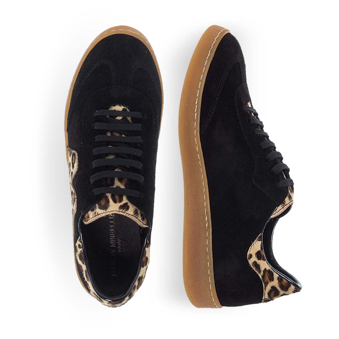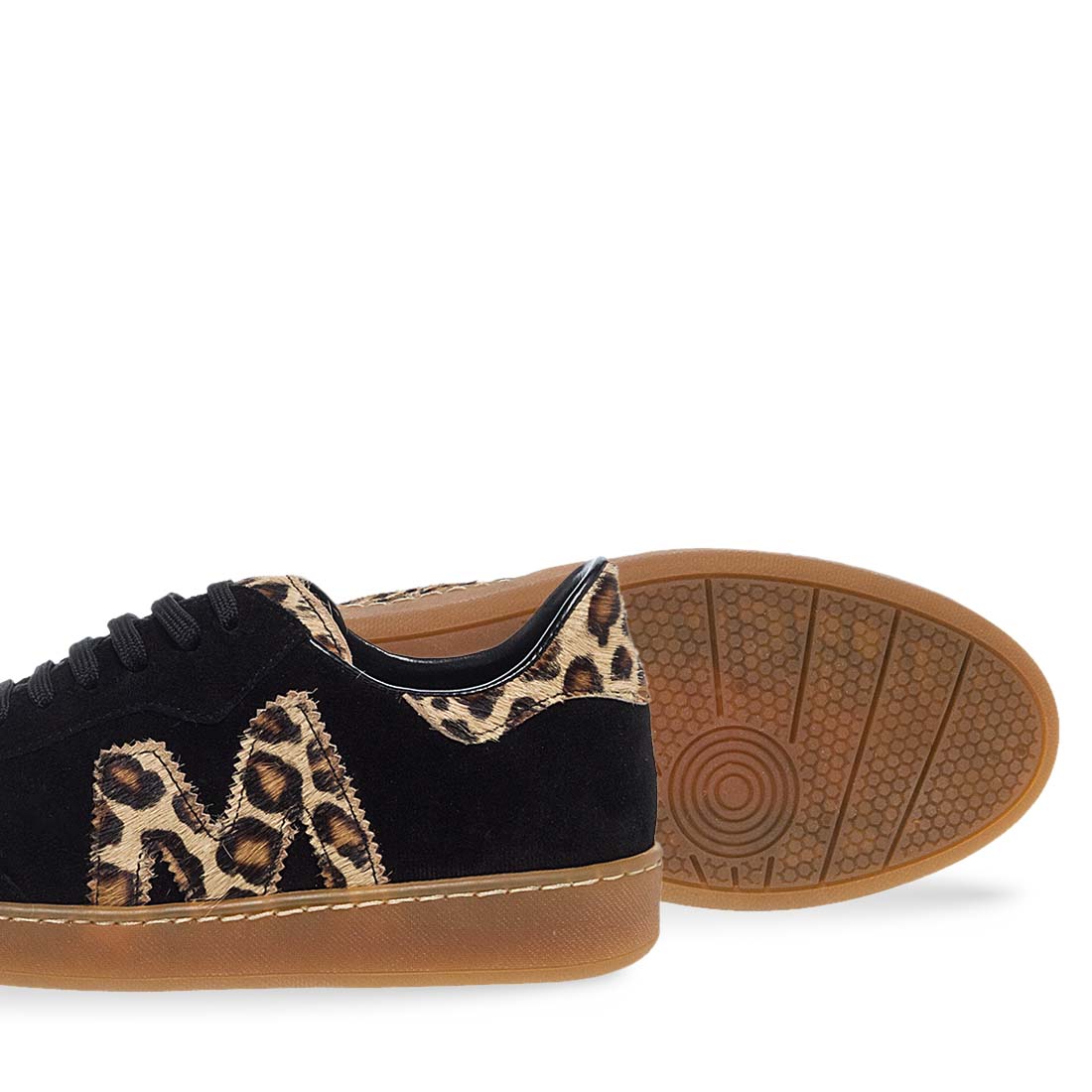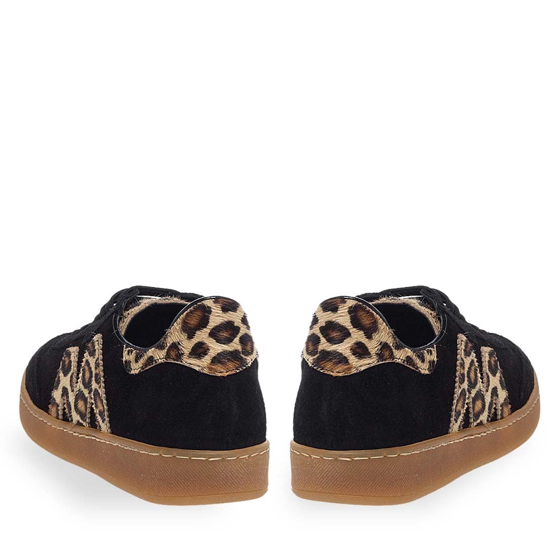 Μελετημένη κατασκευή και ανώτερη άνεση συνδυάζονται σε αυτά τα μαύρα, δερμάτινα γυναικεία sneakers Maison Minrelle, προσφέροντας την τέλεια συνοδεία για την δραστήρια πλευρά της ζωής σας. Ένα στυλ που μιλάει στη σύγχρονη τάση. Λεοπάρ λεπτομέρεια με Logo στο πλάι. Σχέδιο σε suede υφή που δένει με κορδόνια.