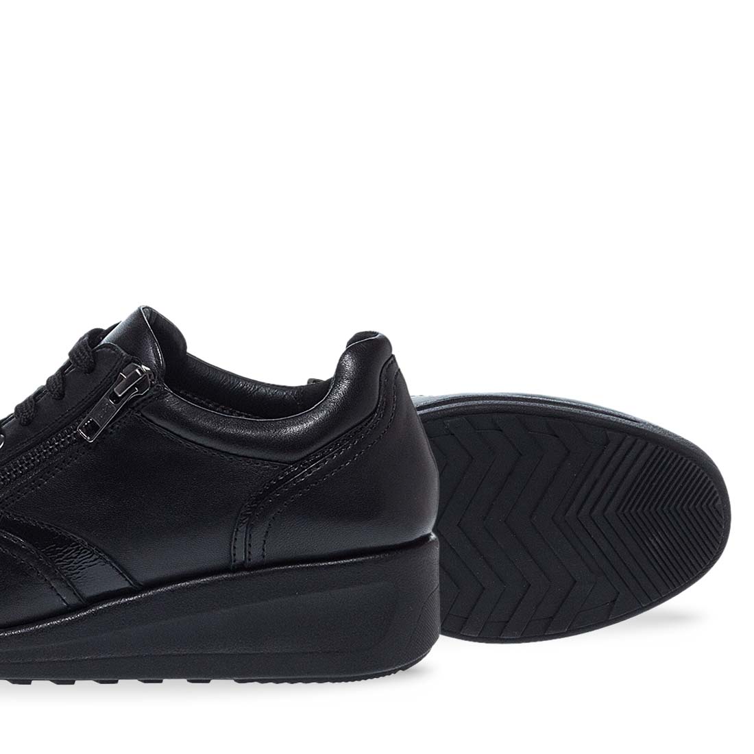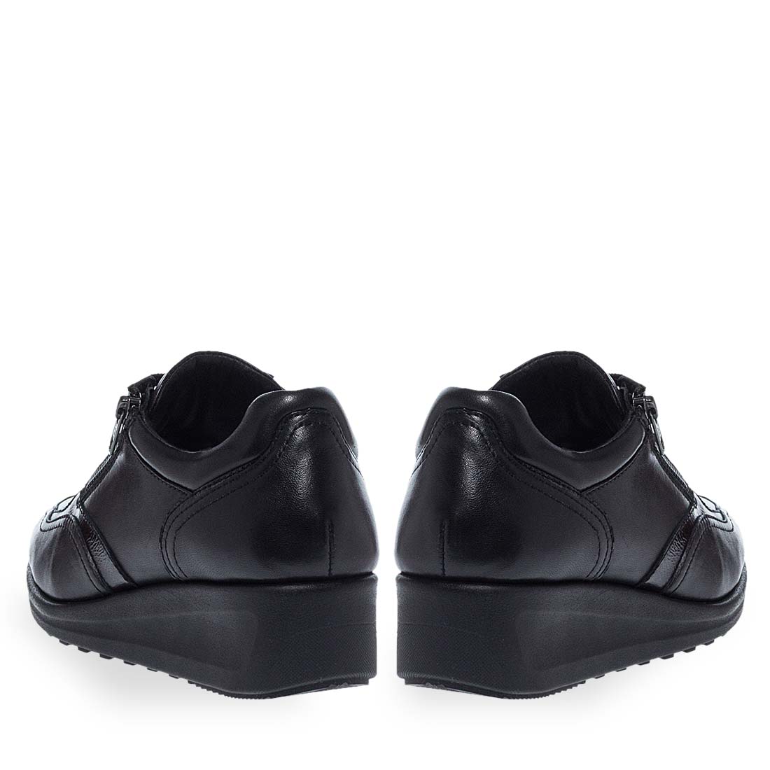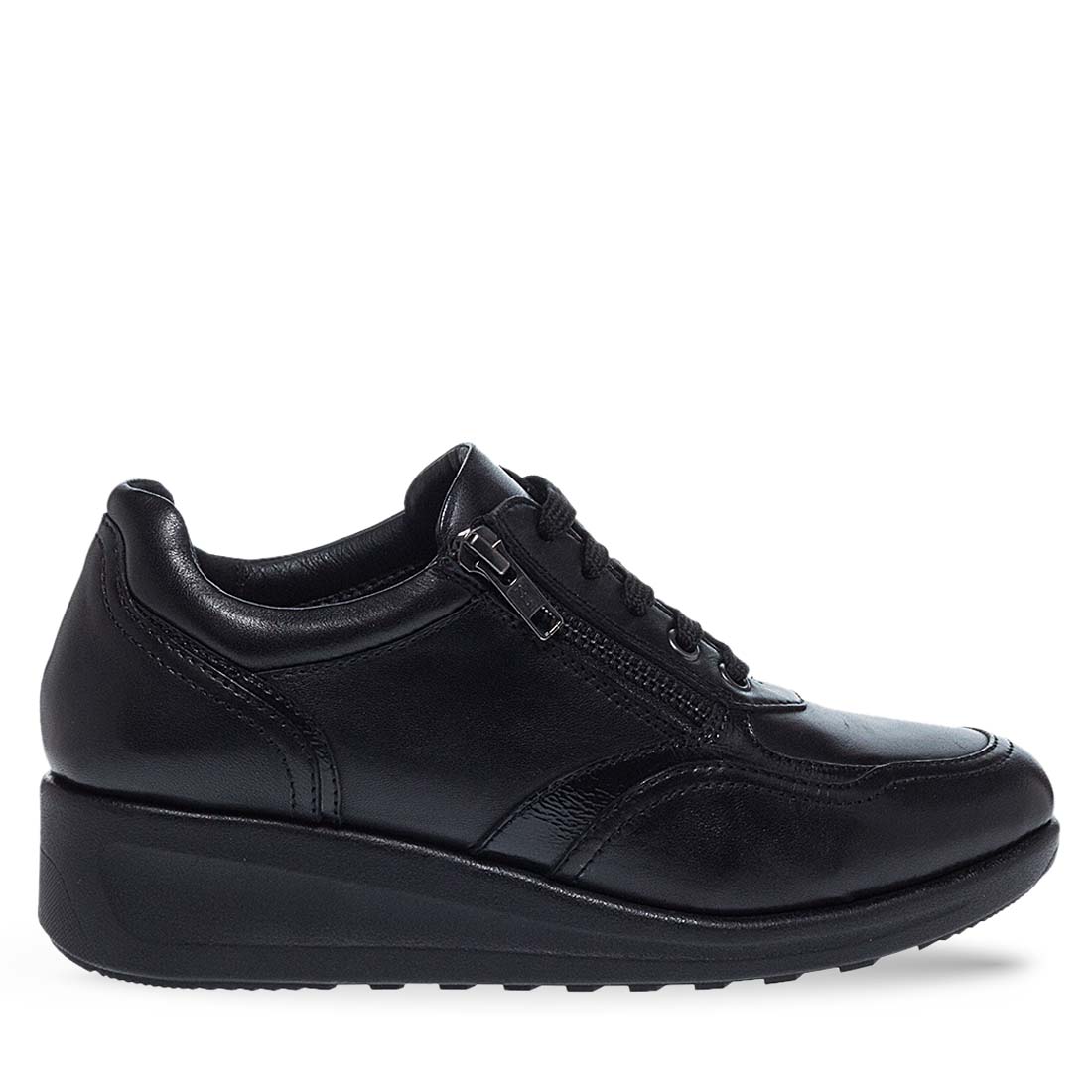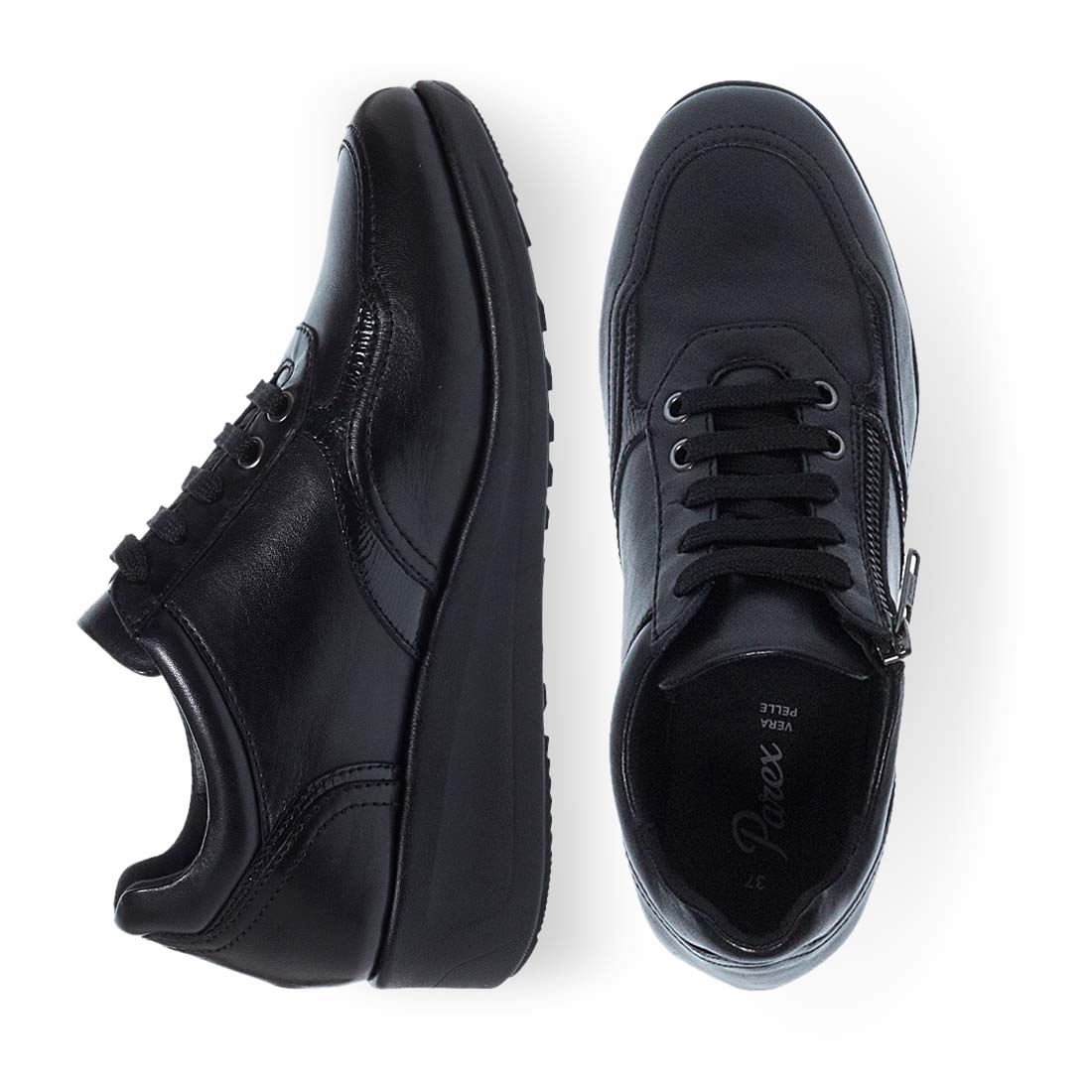 Γυναικεία sneaker Parex. Προσθέστε άνεση και στιλ σε κάθε σου βήμα με αυτά τα μονόχρωμα γυναικεία δερμάτινα sneakers Parex. Διαθέτουν κορδόνια και φερμουάρ στο πλάι για τέλεια εφαρμογή. Εξαιρετικά μαλακό δερμάτινο πάτημα και ανθεκτική σόλα πλατφόρμα. Γυναικεία δερμάτινα sneaker Parex σε μαύρο χρώμα που χαρακτηρίζονται από υψηλή ποιότητα και καλαισθησία.