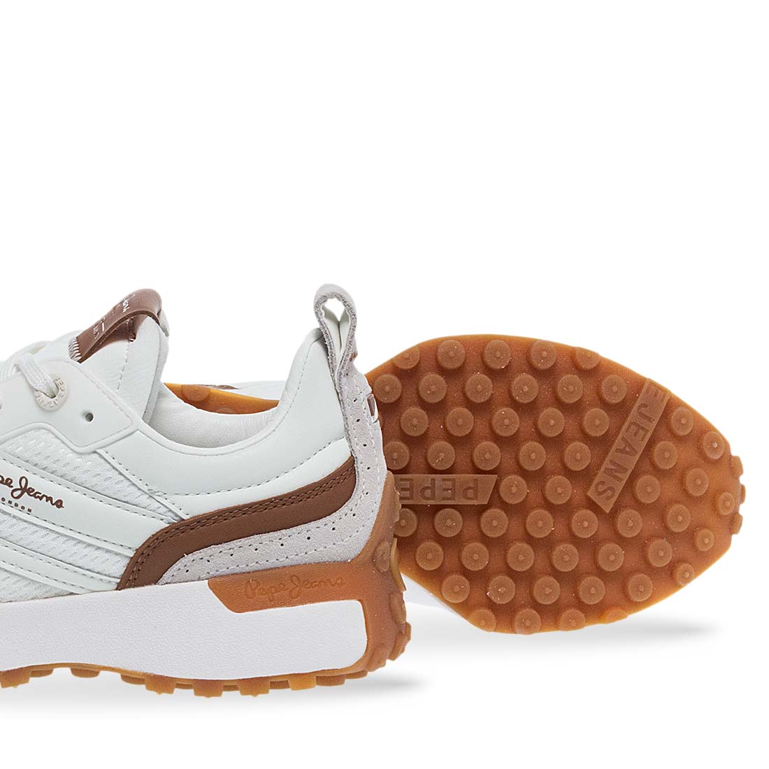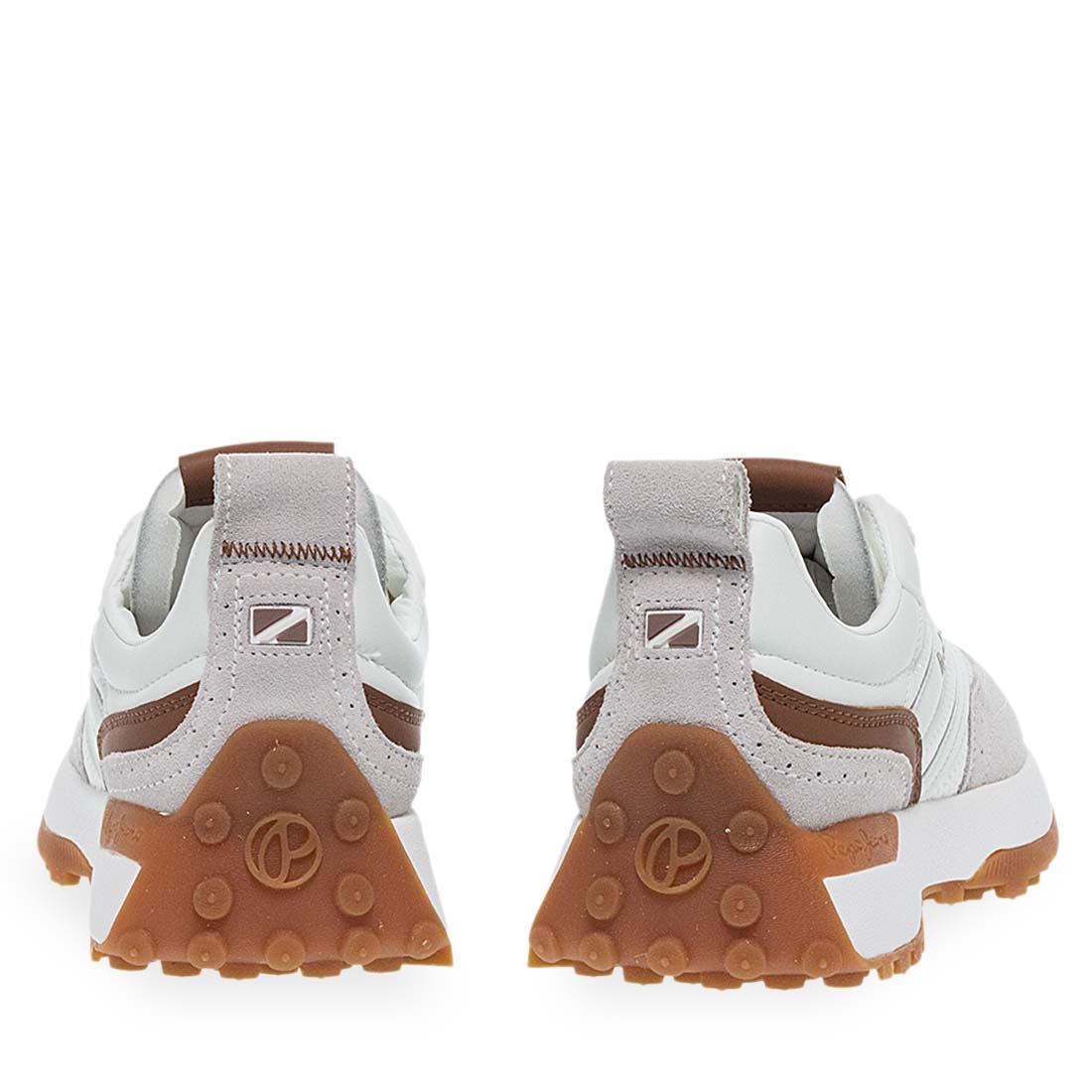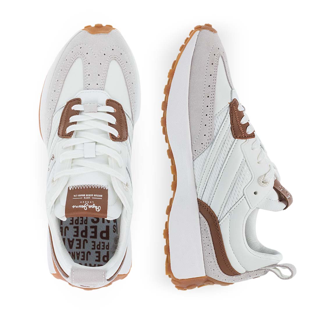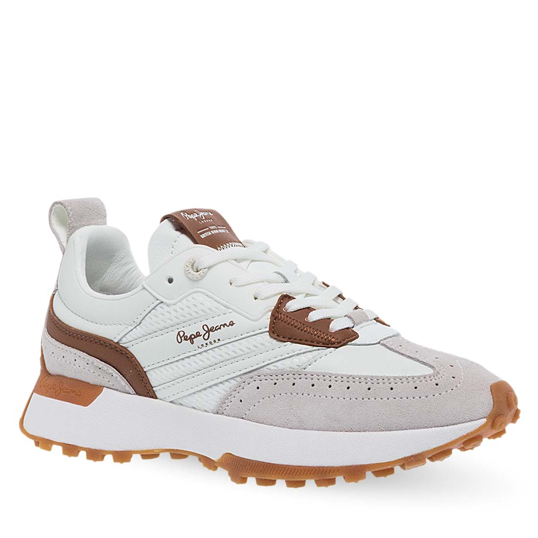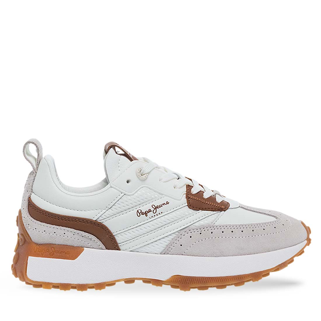 Γυναικεία δερμάτινα sneaker από το brand Pepe Jeans. Γυναικεία sneakers Pepe Jeans από δέρμα σε λευκό-μπεζ συνδυασμό. Sporty chic σχεδιασμός με contrast λεπτομέρειες και άνετη σόλα.