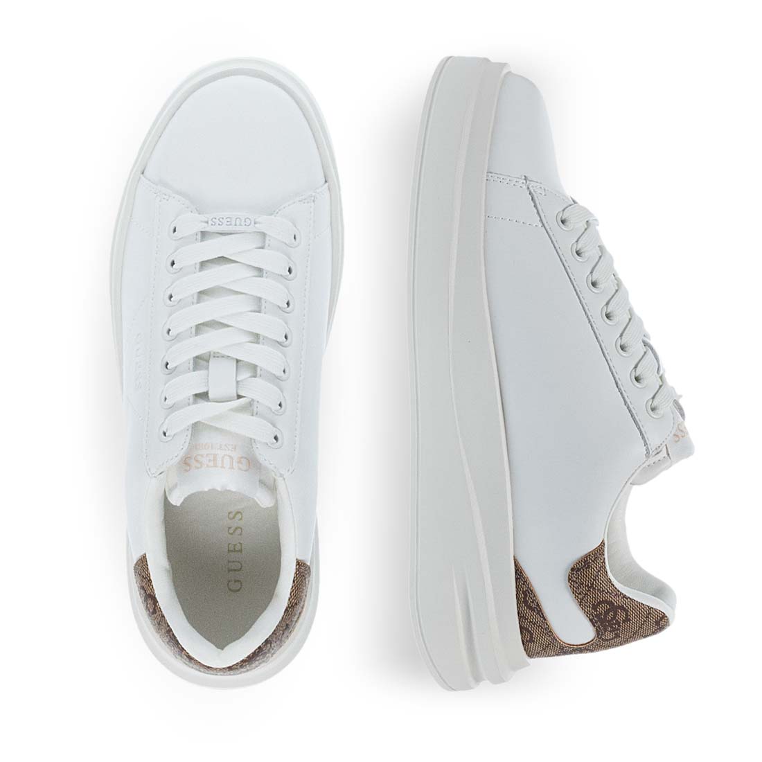 Γυναικεία λευκά sneaker από την εταιρεία Guess για μοναδικά καλοκαιρινά βήματα. Κλείσιμο με κορδόνια. Εξαιρετικά μαλακός πάτος και σταθερή φλατ αντιολισθητική σόλα. Eπώνυμα, γυναικεία sneaker που θα λατρέψετε για κάθε εμφάνιση. Τα συγκεκριμένα sneaker διαθέτουν ενδιάμεση σόλα που απορροφά τους κραδασμούς.