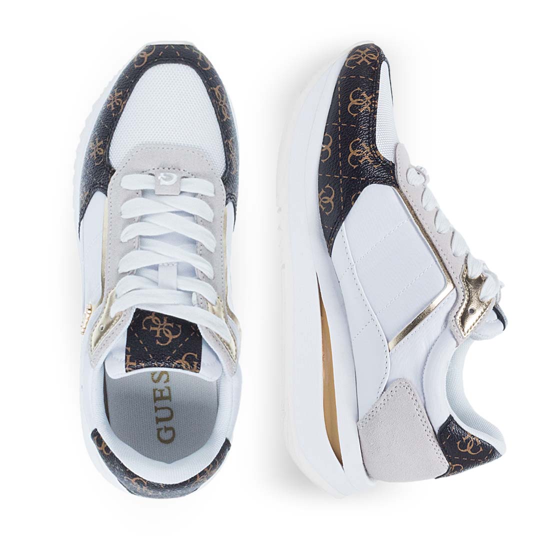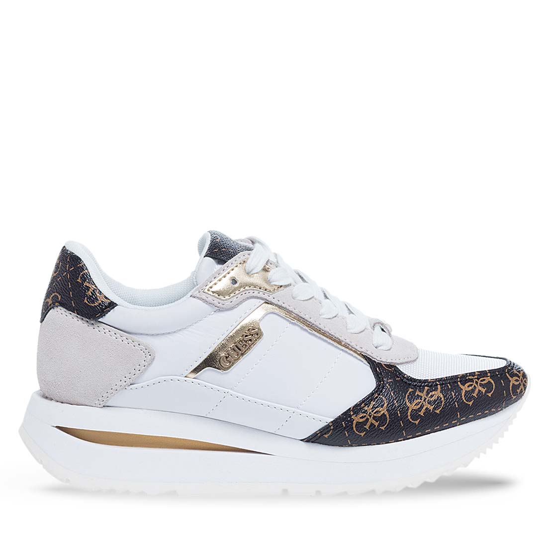 Γυναικεία sneaker Guess για να χαρίσουν άνετα και στιλάτα βήματα όλο το καλοκαίρι. Κλείσιμο με κορδόνια. Μοντέρνος συνδυασμός υλικών και χρωμάτων σε όλο το μήκος τους. Ξεχωρίζουν για την chunky σταθερή σόλα και το χρυσό λογότυπο στο πλαί. Αναπαυτικό πέλμα για ξεκούραστα βήματα όλο το καλοκαίρι.