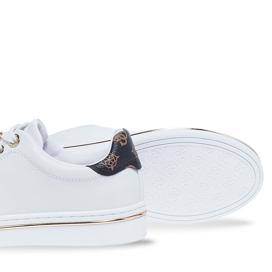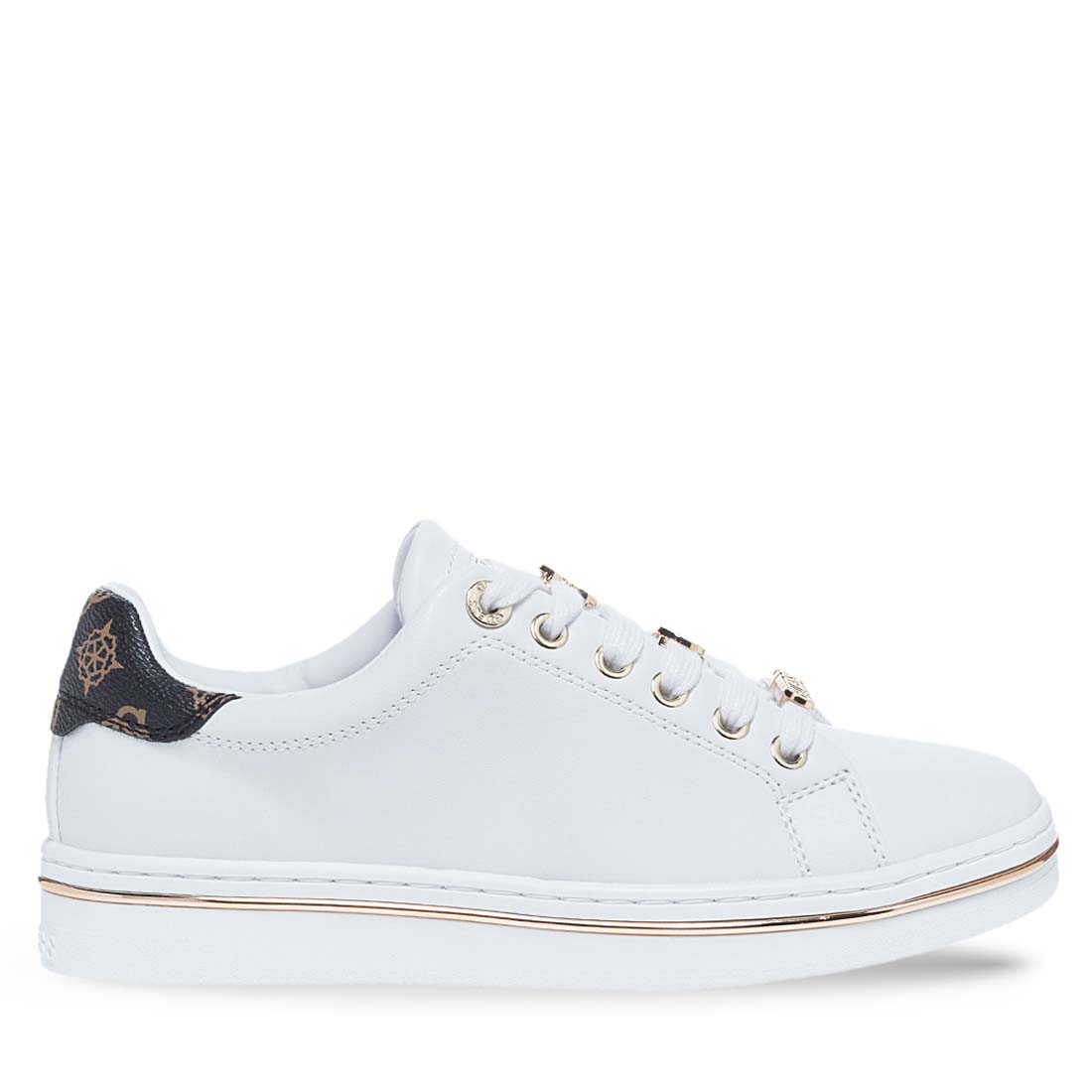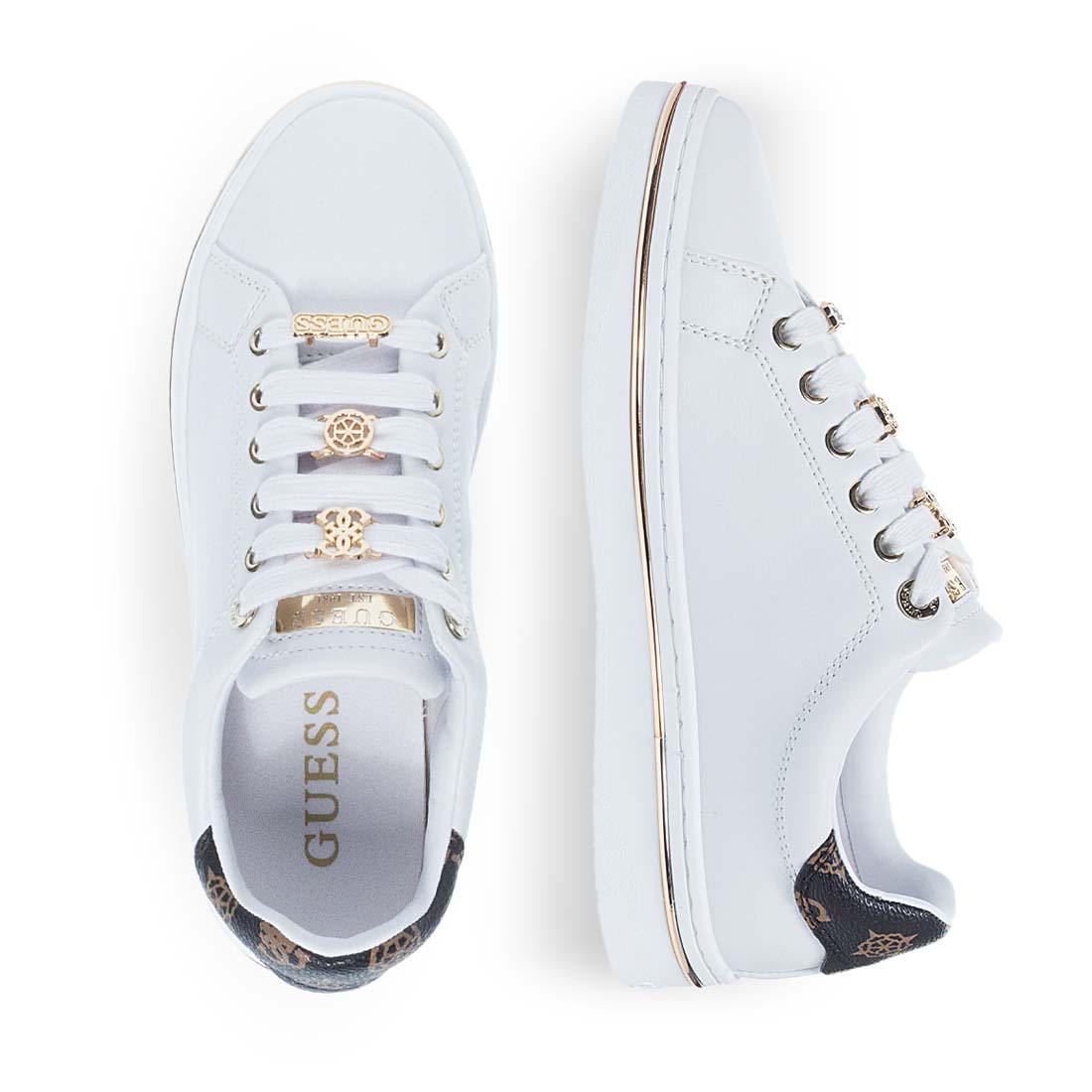 Μοντέρνα και άνετα γυναικεία sneaker της εταιρείας Guess με μικρά μεταλλικά στοιχεία στα κορδόνια που θα σας χαρίσουν μοναδικά, λαμπερά βήματα. Διαθέσιμα σε λευκό χρώμα με υφασμάτινη εσωτερική επένδυση. Δένουν με κορδόνια για εύκολη εφαρμογή. Ποιοτικά παπούτσια Guess που ξεχωρίζουν για την υψηλή αισθητική και το στιλ τους.