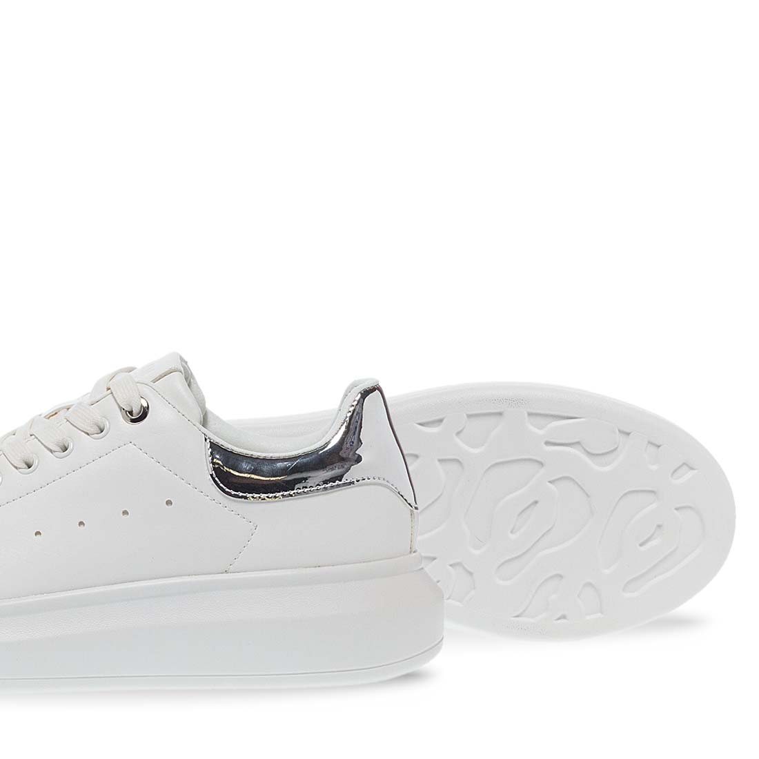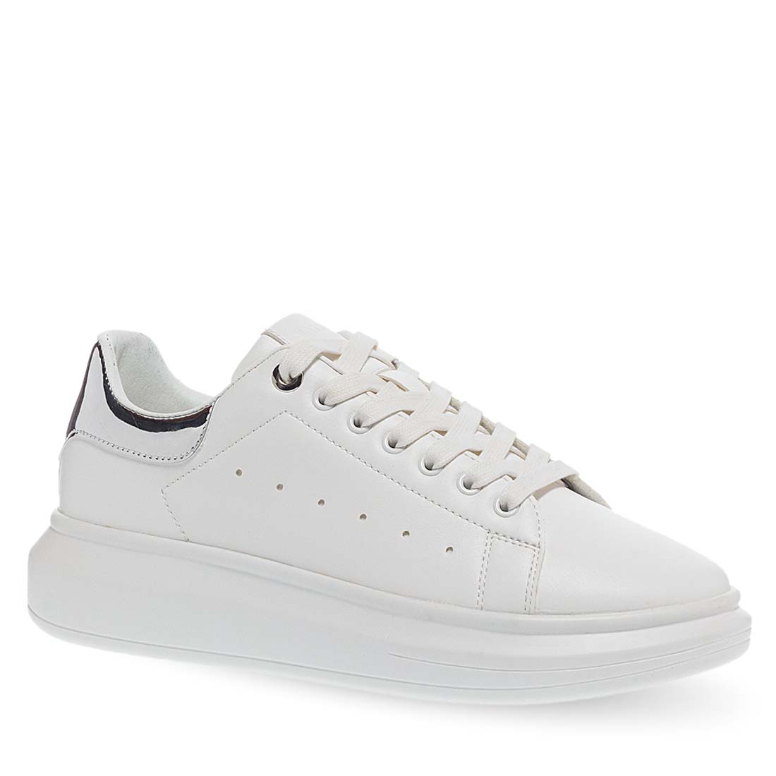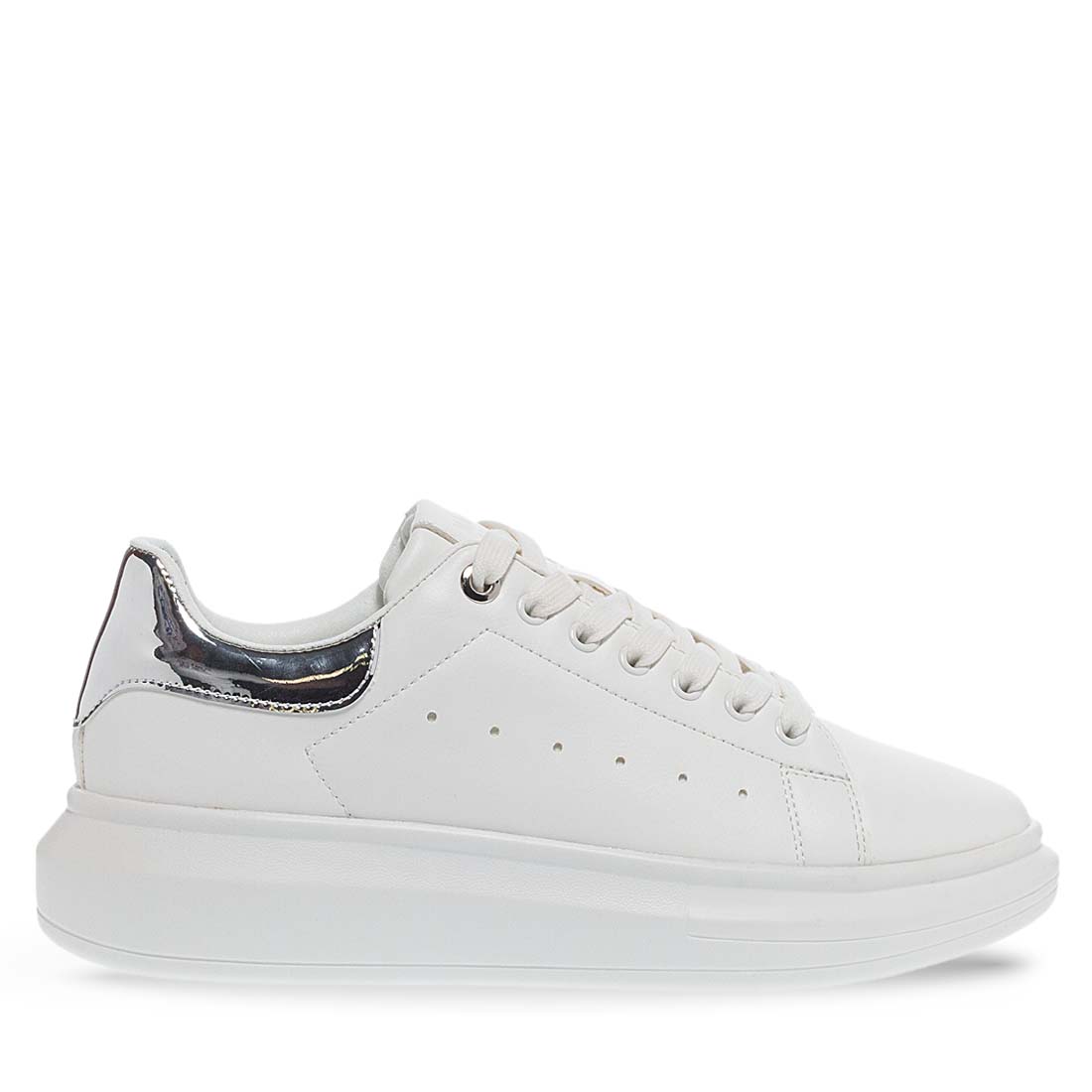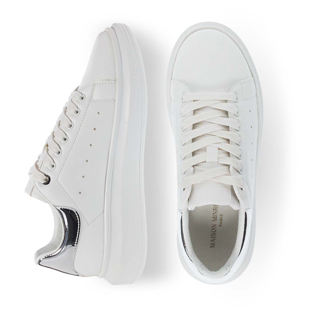 Λευκά γυναικεία sneakers της εταιρείας Maison Minrelle, σχεδιασμένα από συνθετικό δέρμα άριστης ποιότητας. Διαθέτουν ασημί λεπτομέρεια στο πίσω μέρος. Πολύ αναπαυτικό πάτημα και σταθερή λευκή σόλα που δεν γλιστράει. Δένουν με κορδόνια. Ποιοτικά και άνετα sneaker που δεν θα θέλετε να αποχωριστείτε!