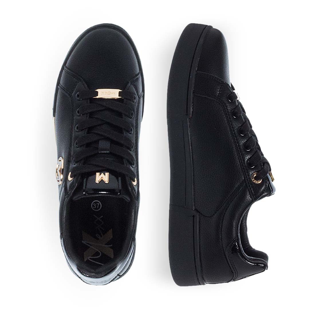 Γυναικεία sneaker Mexx, σε μαύρο χρώμα από συνθετικό δέρμα υψηλής ποιότητας. Kλείσιμο με κορδόνια και χρυσή λεπτομέρεια στο πλάι. Διαθετουν αναπαυτικό πάτημα εσωτερικά! Μια μοντέρνα και άνετη επιλογή για τη δύσκολη καθημερινότητά σας.