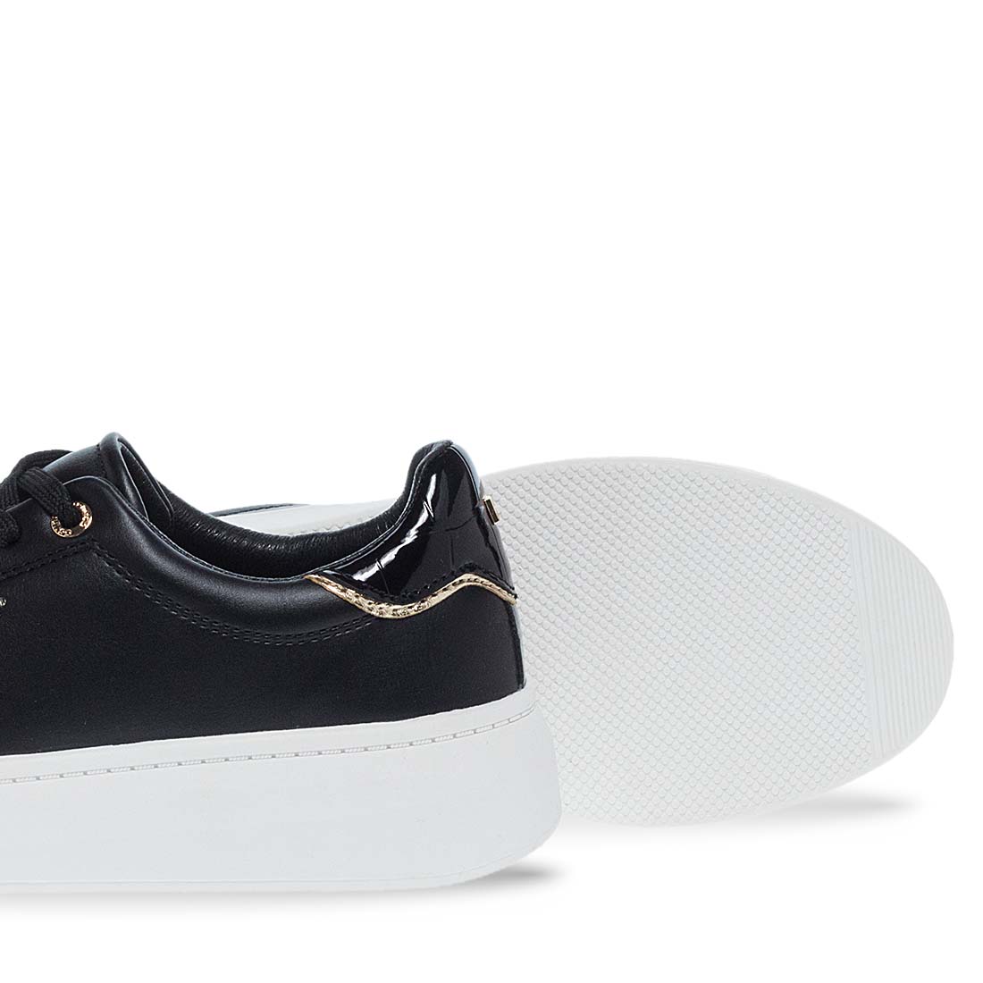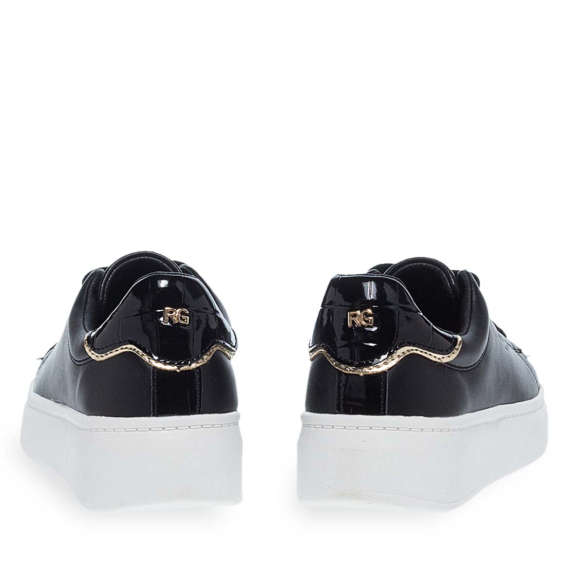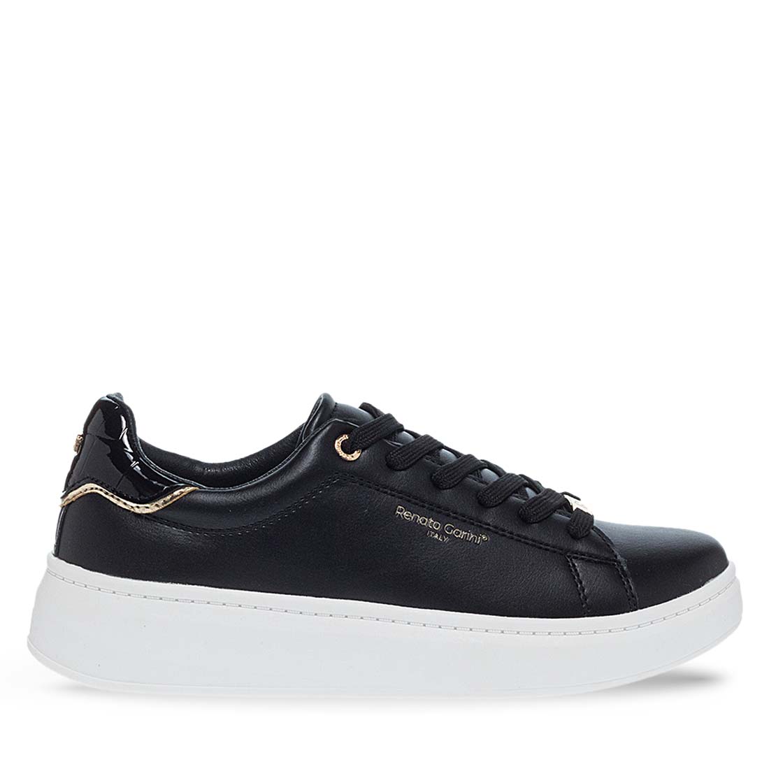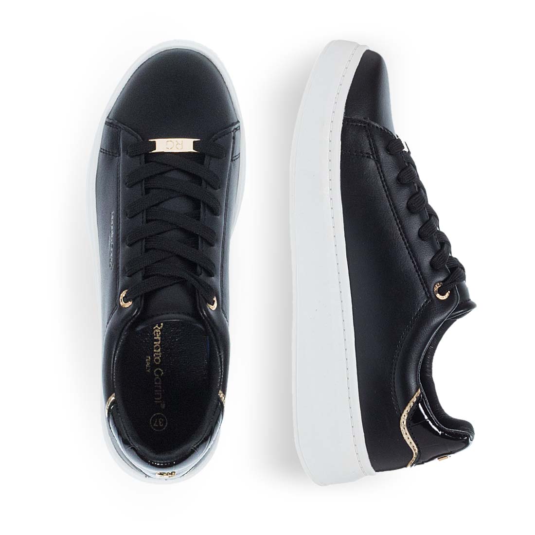 Μαύρα γυναικεία sneakers της εταιρείας Renato Garini. Δένουν με κορδόνια για εύκολη εφαρμογή. Από συνθετικό δέρμα άριστης ποιότητας. Διαθέτουν εξαιρετικά μαλακό πέλμα και ανθεκτική φλατ αντιολισθητική σόλα σε λευκό χρώμα. Με λογότυπο στο πλάι και κροκό λεπτομέρείες στο πίσω μέρος.