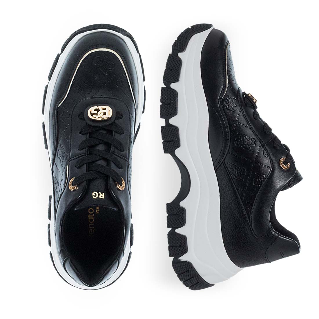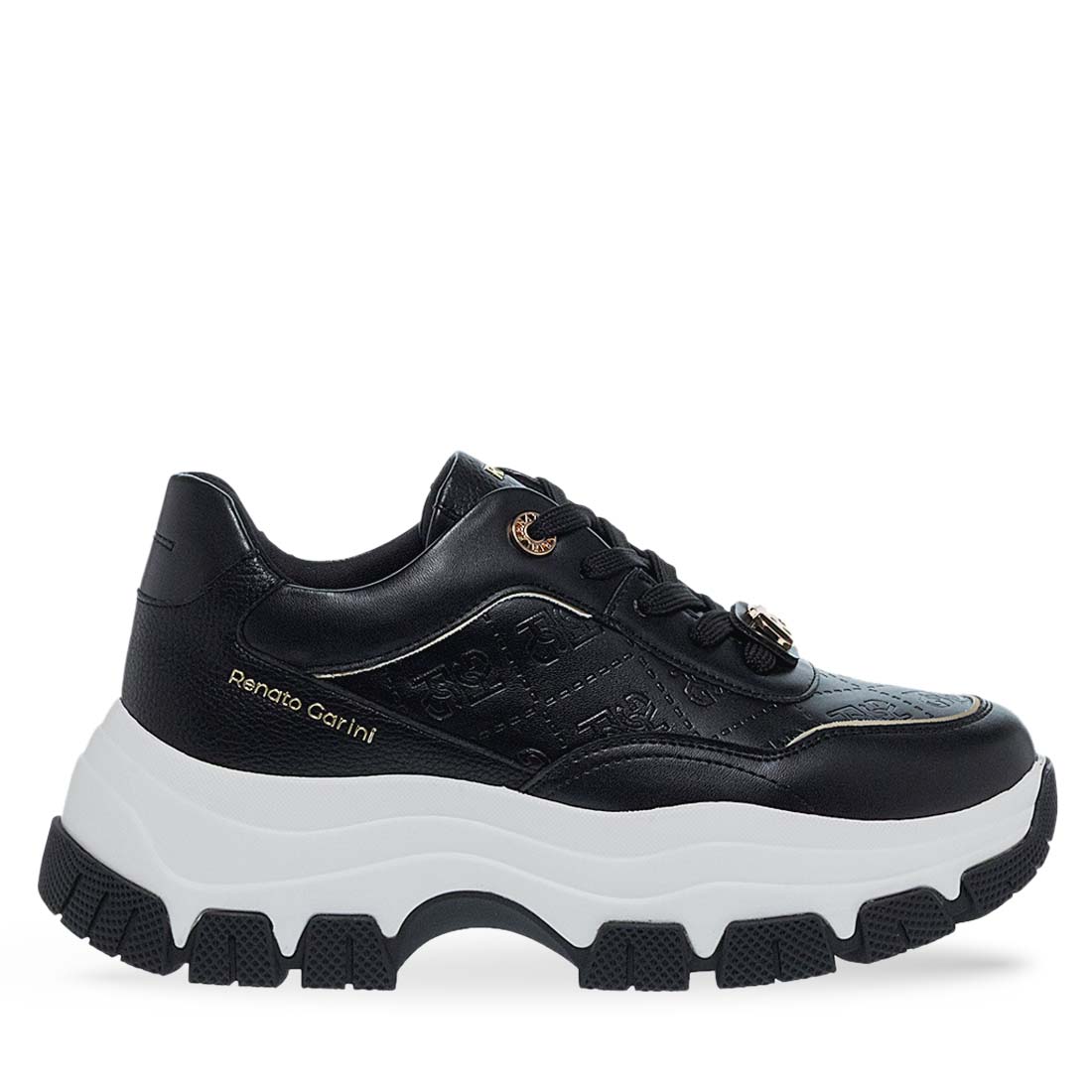 Γυναικεία sneaker από το brand Renato Garini. Γυναικεία μαύρα chunky sneakers, με ανάγλυφο λογότυπο και διχρωμία στη σόλα. Στυλ και άνεση για μοντέρνες εμφανίσεις.