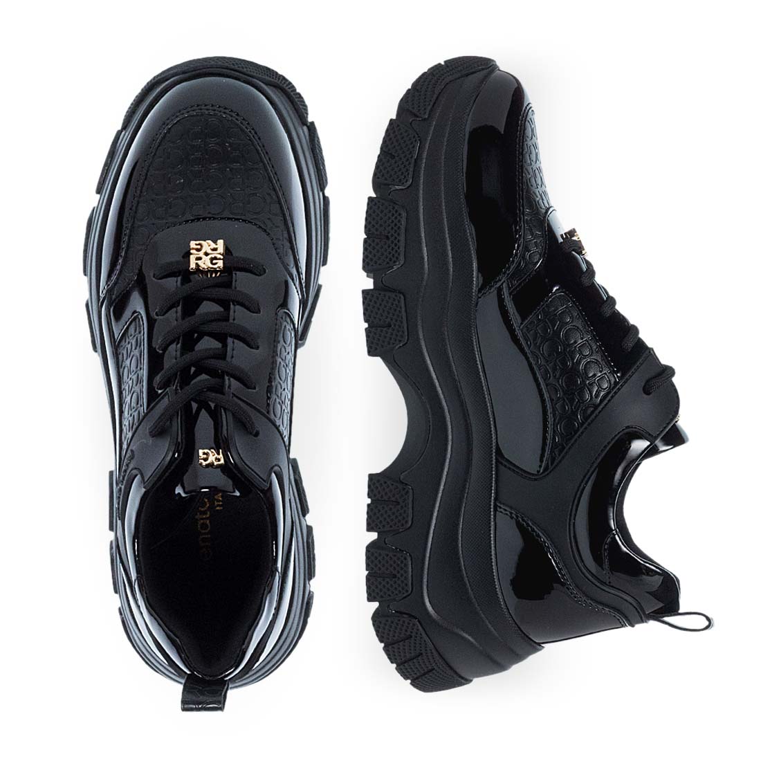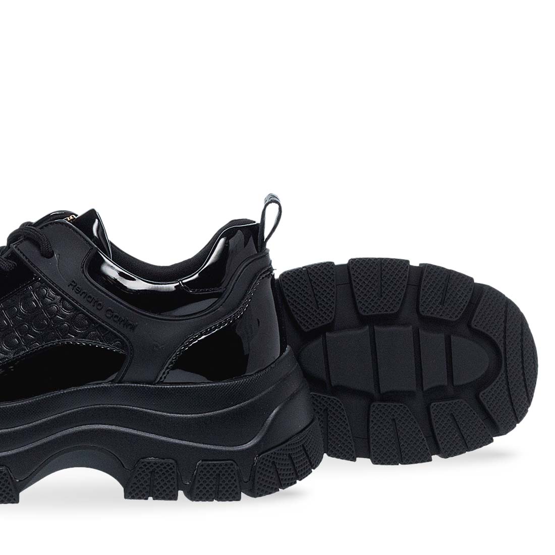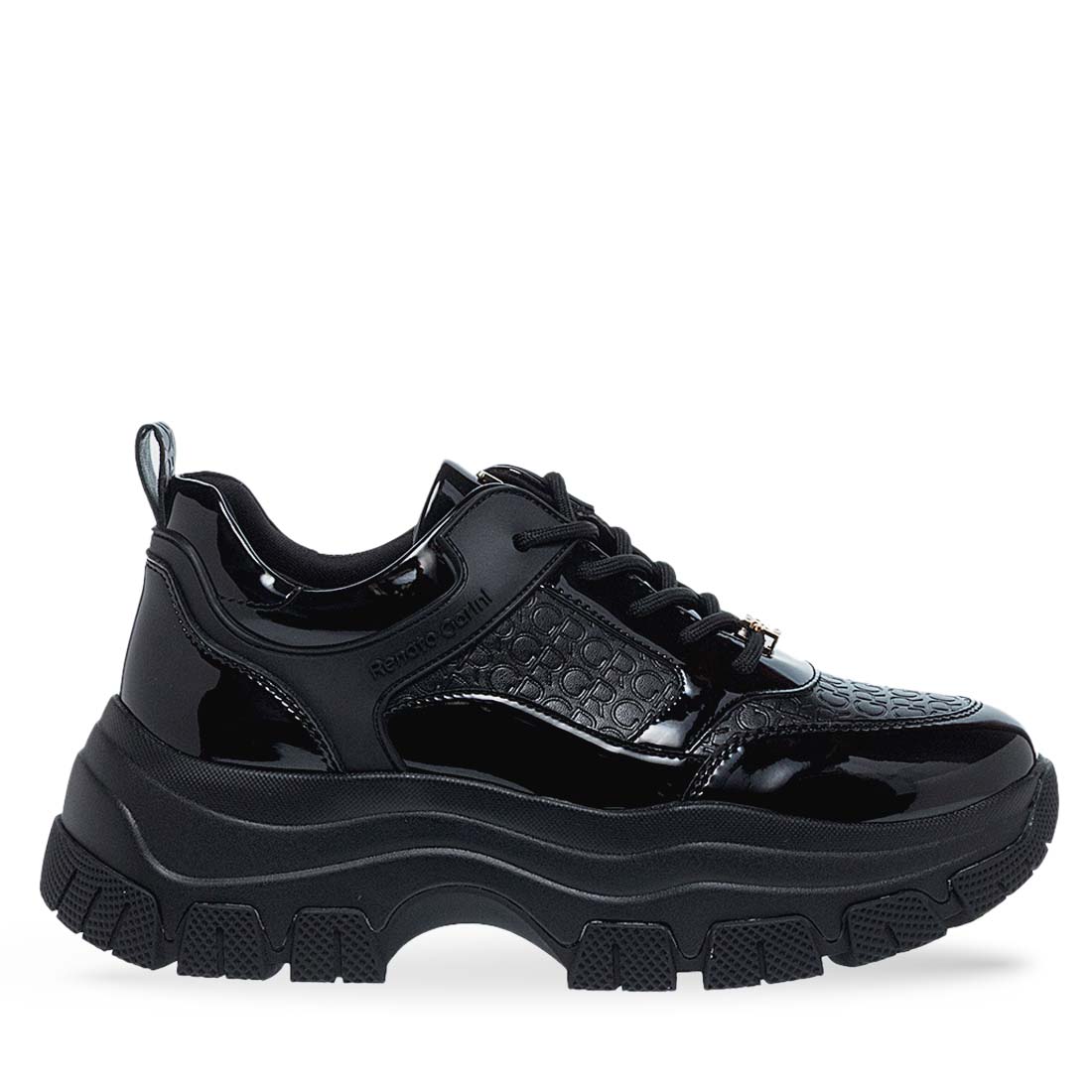 Γυναικεία sneaker από το brand Renato Garini. Γυναικεία chunky sneakers Renato Garini σε μαύρο χρώμα με χρυσές λεπτομέρειες και τρακτερωτή σόλα. Στυλ και άνεση μαζί.