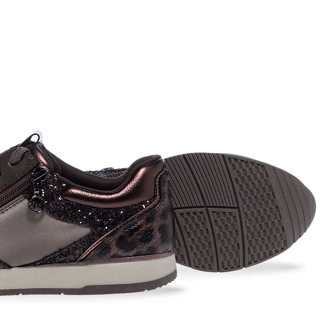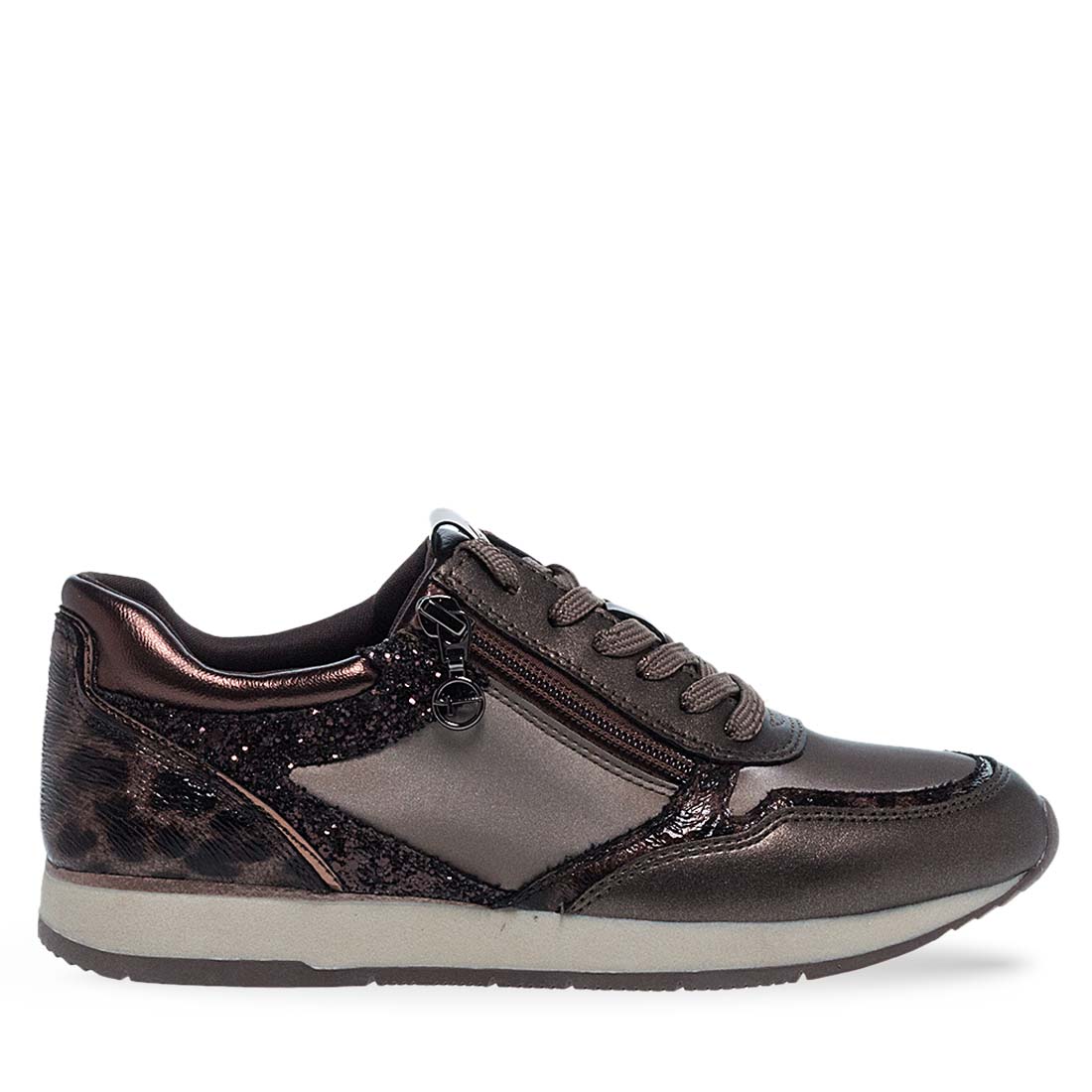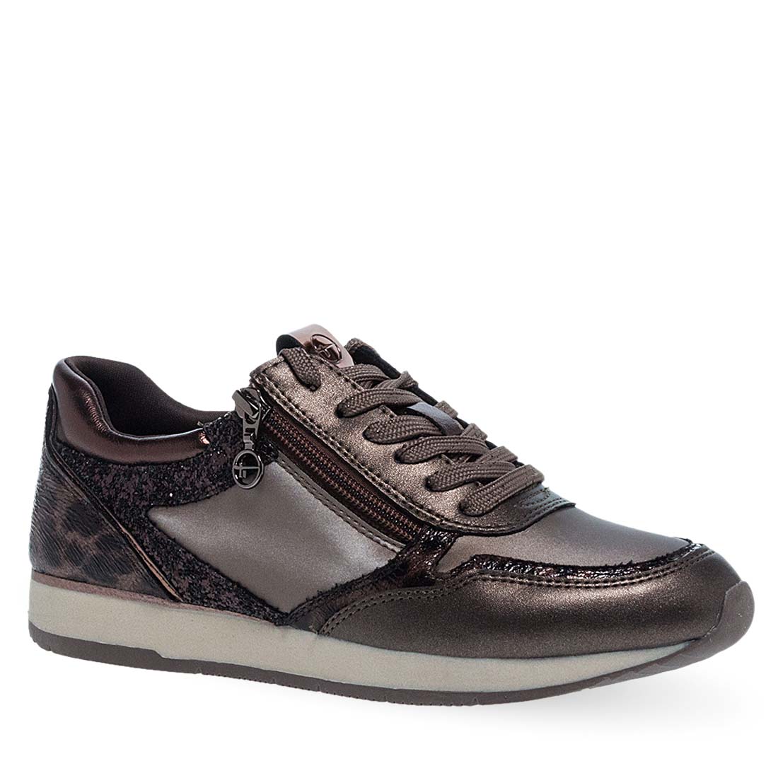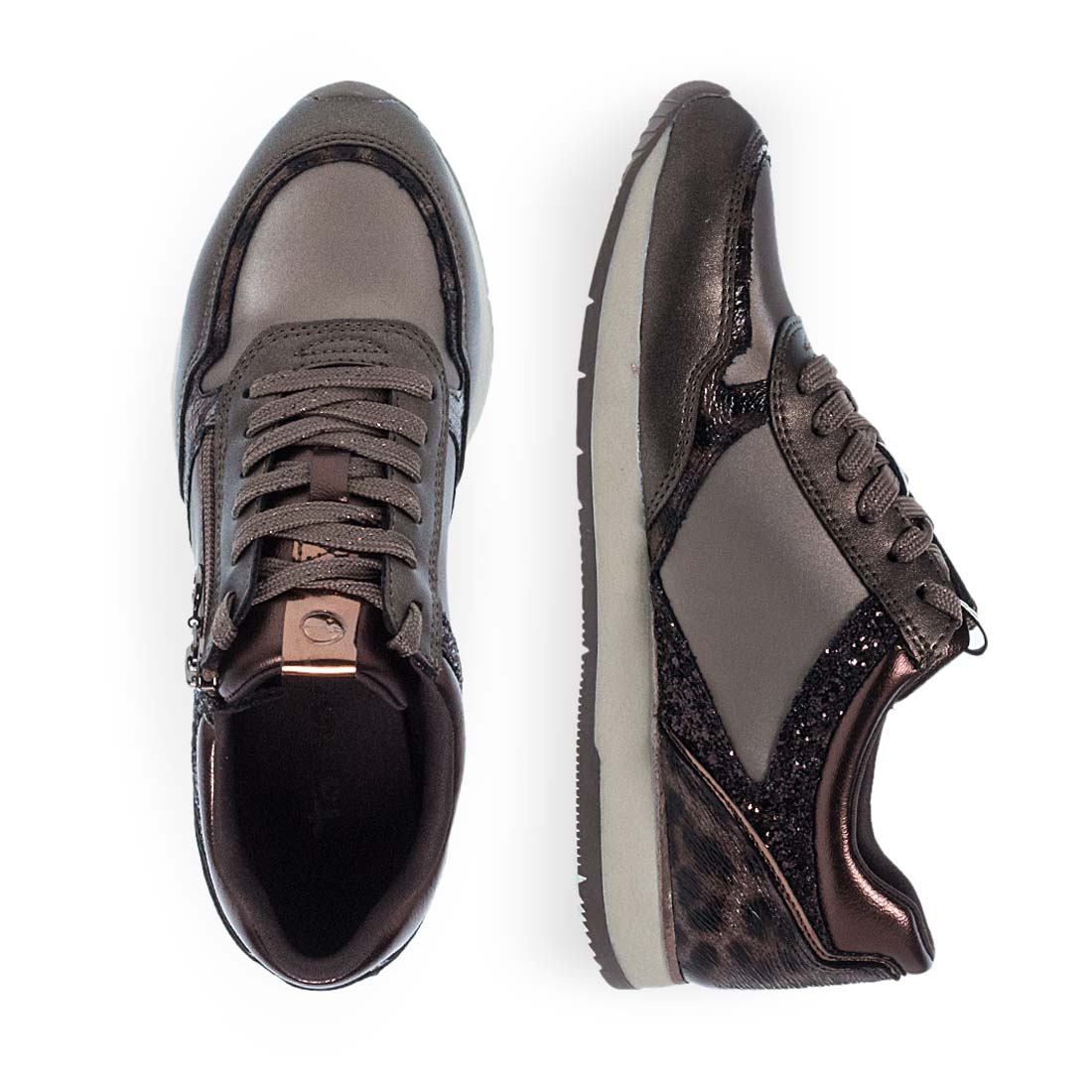 Γυναικεία sneaker από το brand Tamaris. Γυναικεία sneakers σε μπρονζέ τόνους με glitter λεπτομέρειες, για μοντέρνο και λαμπερό στυλ.