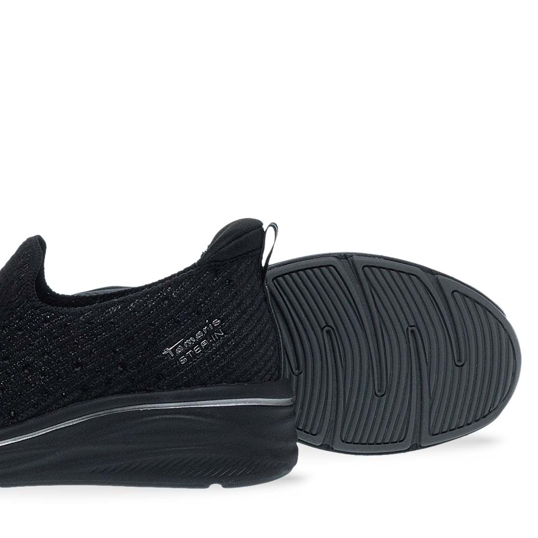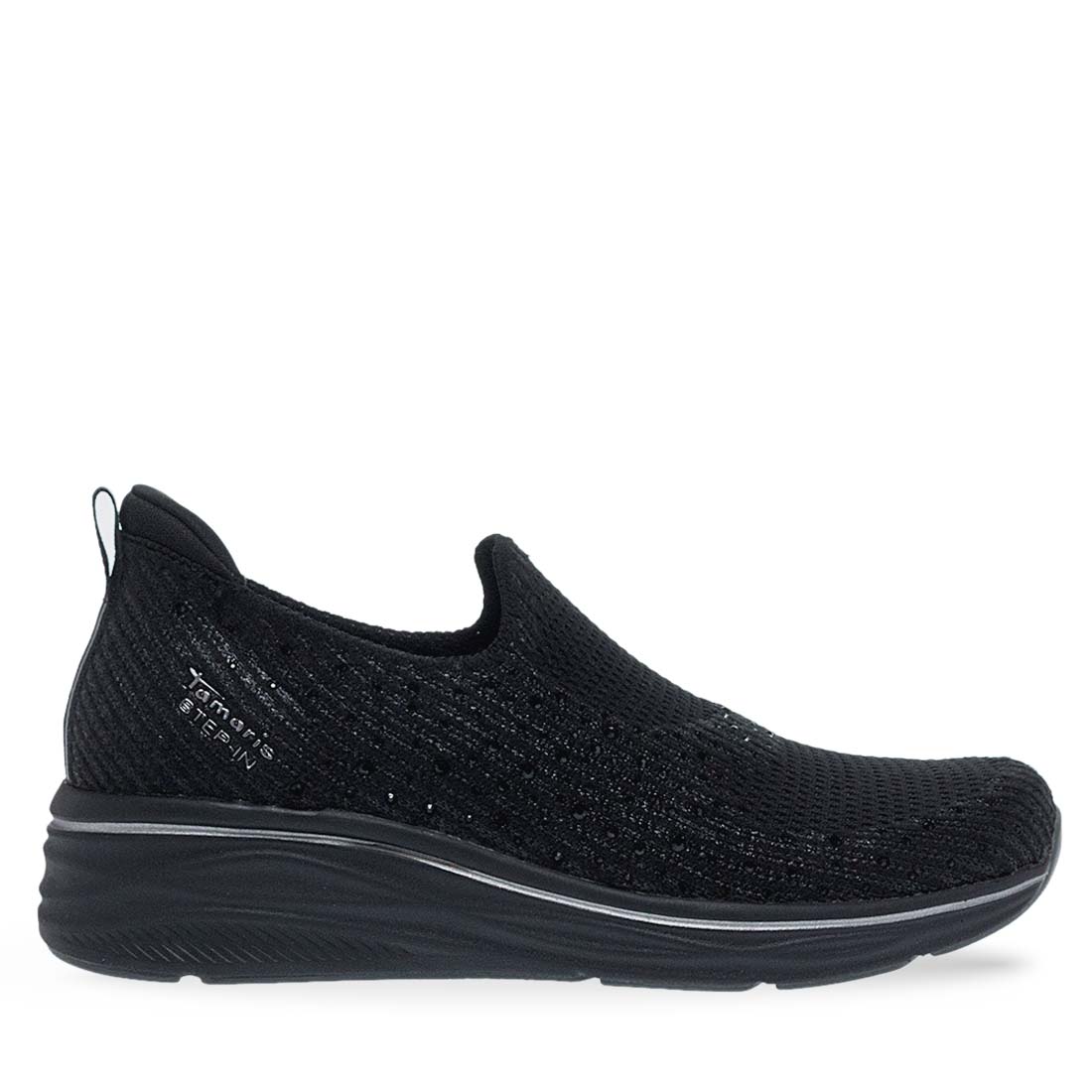 Γυναικεία sneaker από το brand Tamaris. Γυναικεία slip-on sneakers σε μαύρο χρώμα, ιδανιά για καθημερινή χρήση και άνεση. Το παπούτσι διαθέτει ελαστικό πλεκτό ύφασμα που εφαρμόζει τέλεια στο πόδι, ενώ η ελαφριά σόλα προσφέρει εξαιρετική αντικραδασμική προστασία. Το σχέδιο είναι ιδανικό για περπάτημα ή χαλαρές δραστηριότητες, προσφέροντας στυλ και λειτουργικότητα.