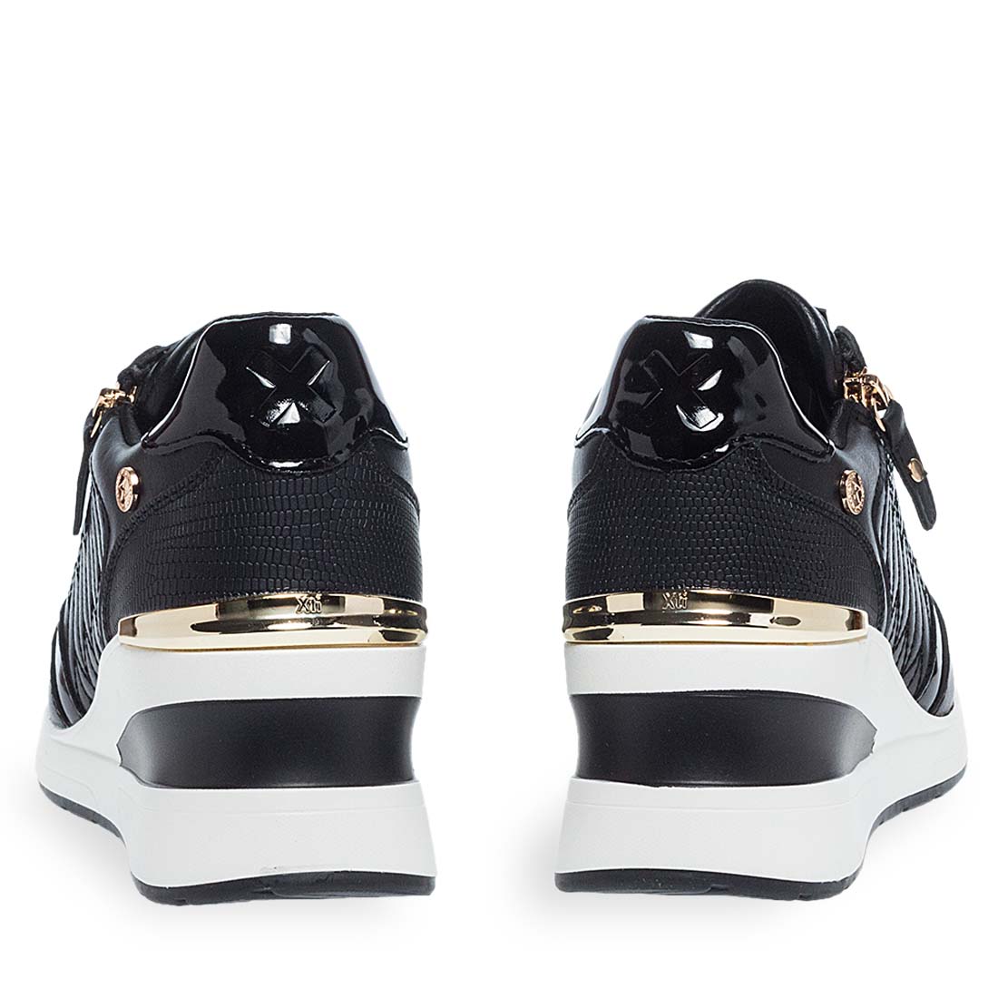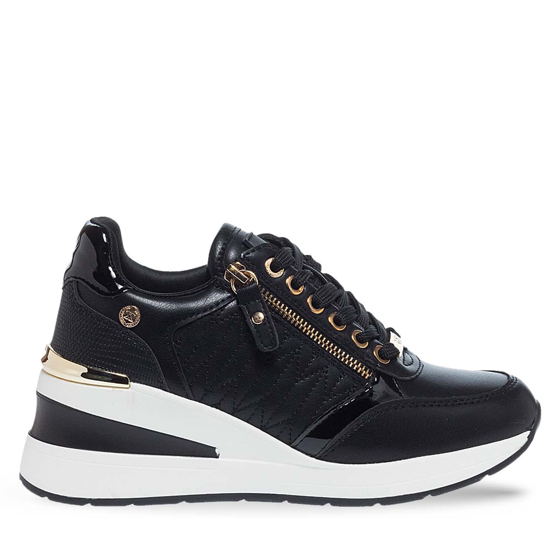 Αναπαυτικά και μοντέρνα sneaker από τη νέα συλλογή Xti. Δέσιμο με κορδόνια. Άνετο πάτημα, σόλα με χαμηλή πλατφόρμα. Χρυσές λεπτομέρειες και λειτουργικό φερμουάρ. Με θηλιά στο πίσω μέρος και διακοσμημένα glitter. Μοντέρα και άνετα υποδήματα που θα ανανεώσουν το outfit σας.
