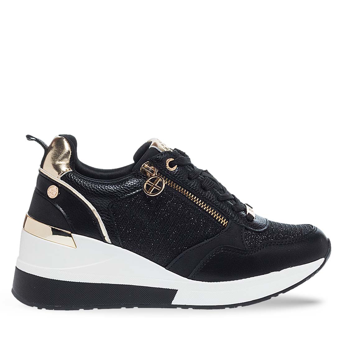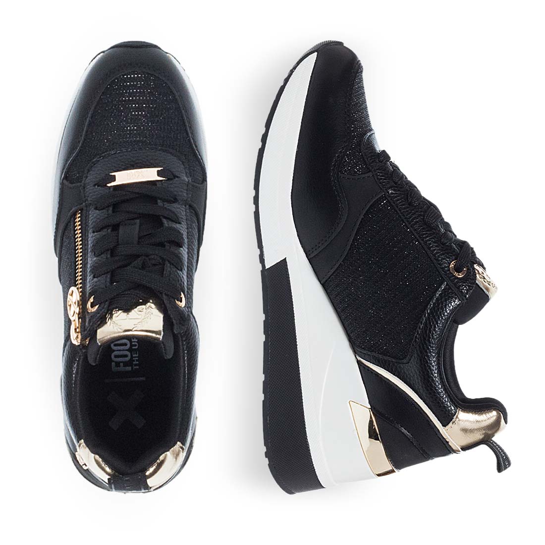 Μοντέρνα sneaker από τη νέα συλλογή Xti σε μαύρο χρώμα. Διαθέτουν κορδόνια και λειτουργικό φερμουάρ. Με ψηλή σταθερή σόλα με τακούνι πλατφόρμα, εξαιρετικά σταθερό. Έχουν λεπτομέρειες από glitter και μαλακό πάτο memory foam. Αναβαθμίστε το αθλητικό σας στιλ με αυτό το υπέροχο ζευγάρι sneaker και χαρίστε στον εαυτό σας ξεκούραστα βήματα.