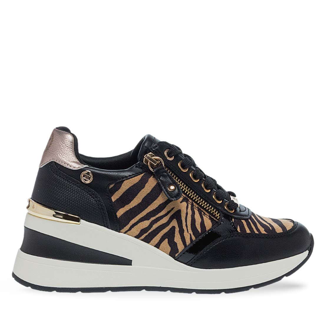 Γυναικεία sneaker από το brand Xti. Γυναικεία sneakers με zebra print και μαύρες λεπτομέρειες. Στυλάτα με σόλα πλατφόρμα για επιπλέον ύψος.