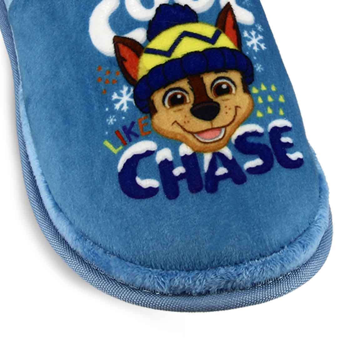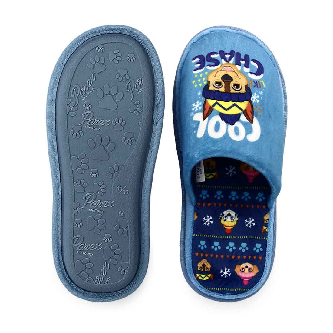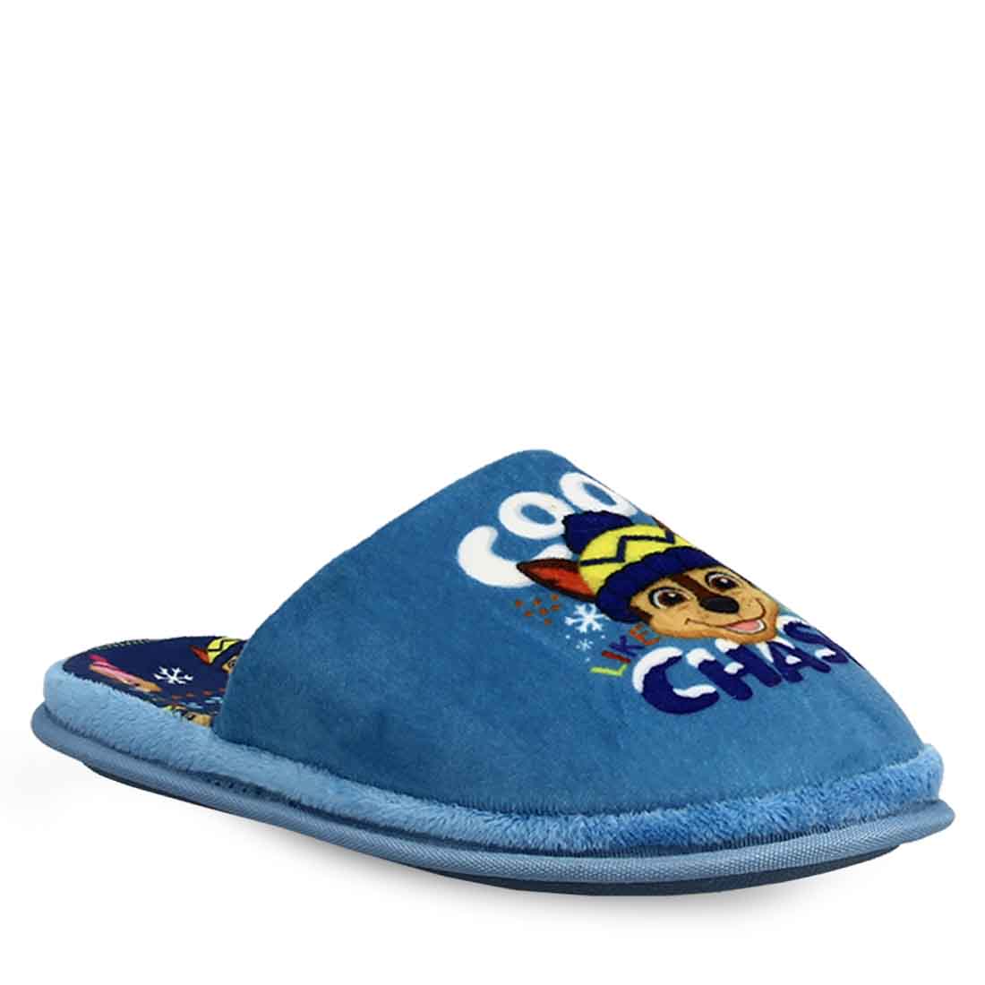 Παιδικές παντόφλες σπιτιού,εμπνευσμένες από τη παιδική σεiρά Paw Patrol. Είναι σχεδιασμένες από βελουτέ ύφασμα και διαθέτουν έντονα χρώματα και σχέδια.