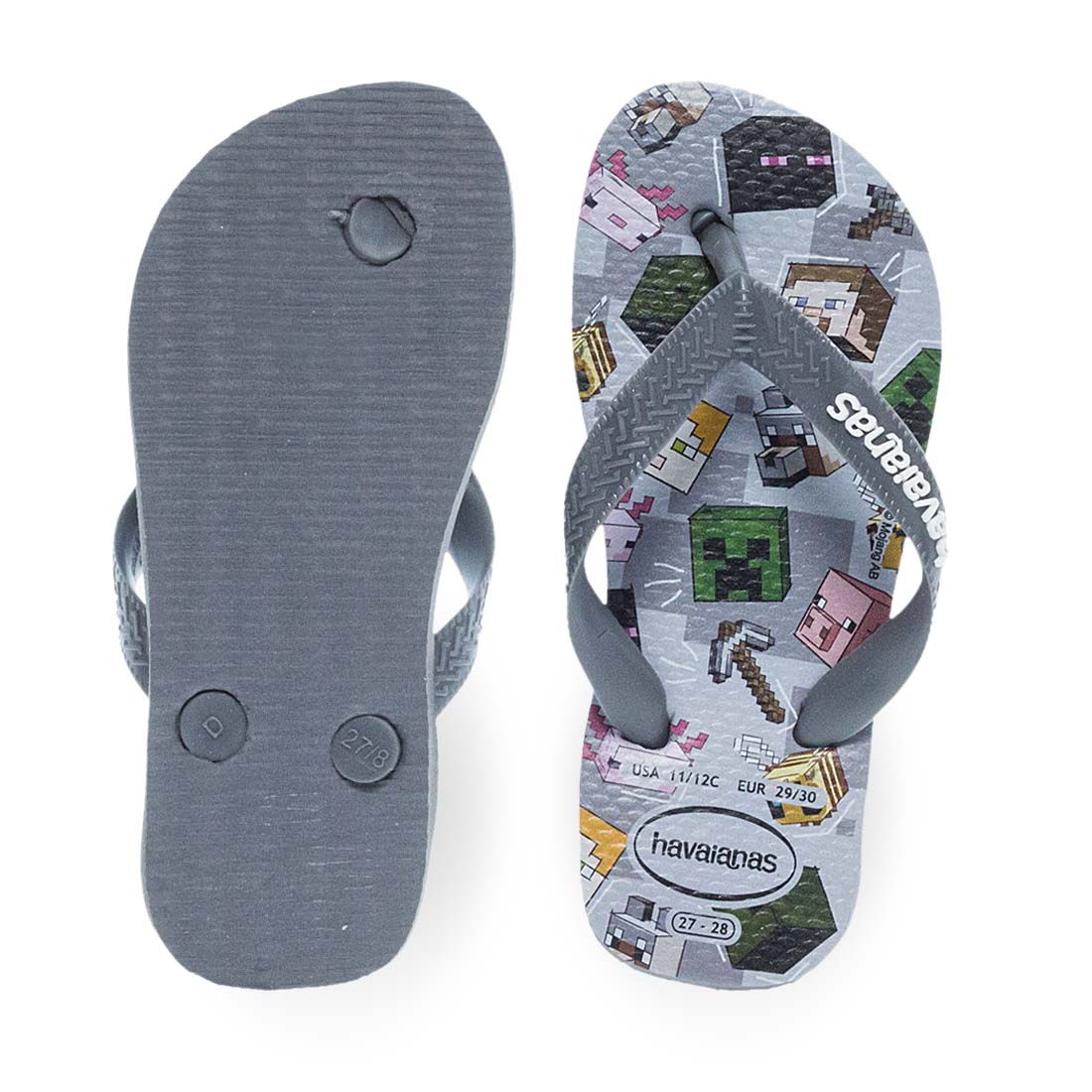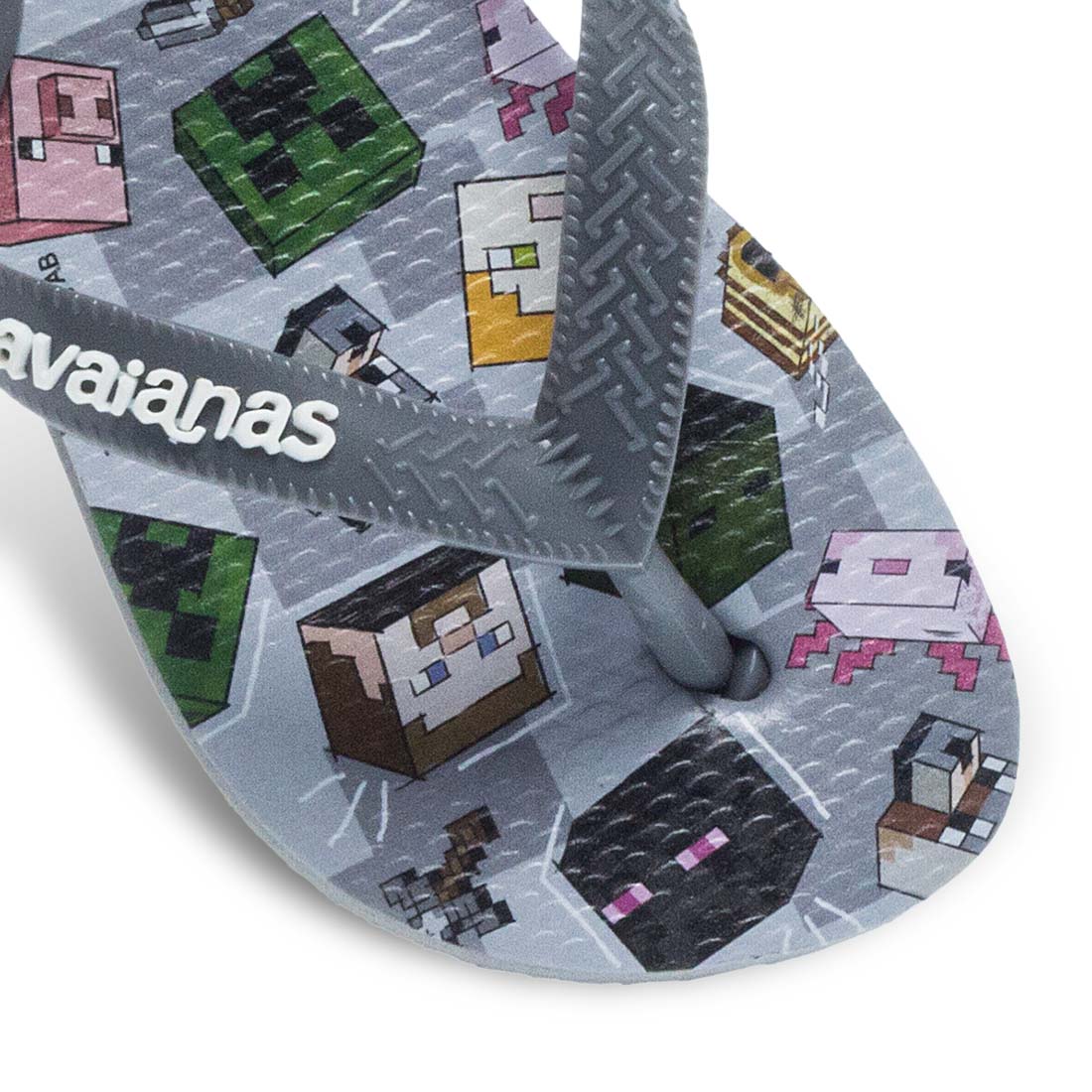 Kid''s flip flops by brand Havaianas. Printed foodbed with Minecraft design. Antislide sole. V-strap on top with logo design. Easy application.
