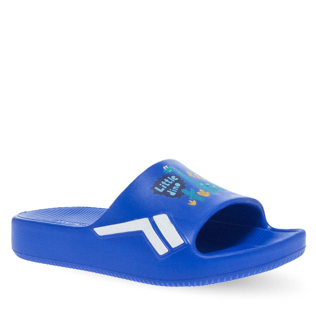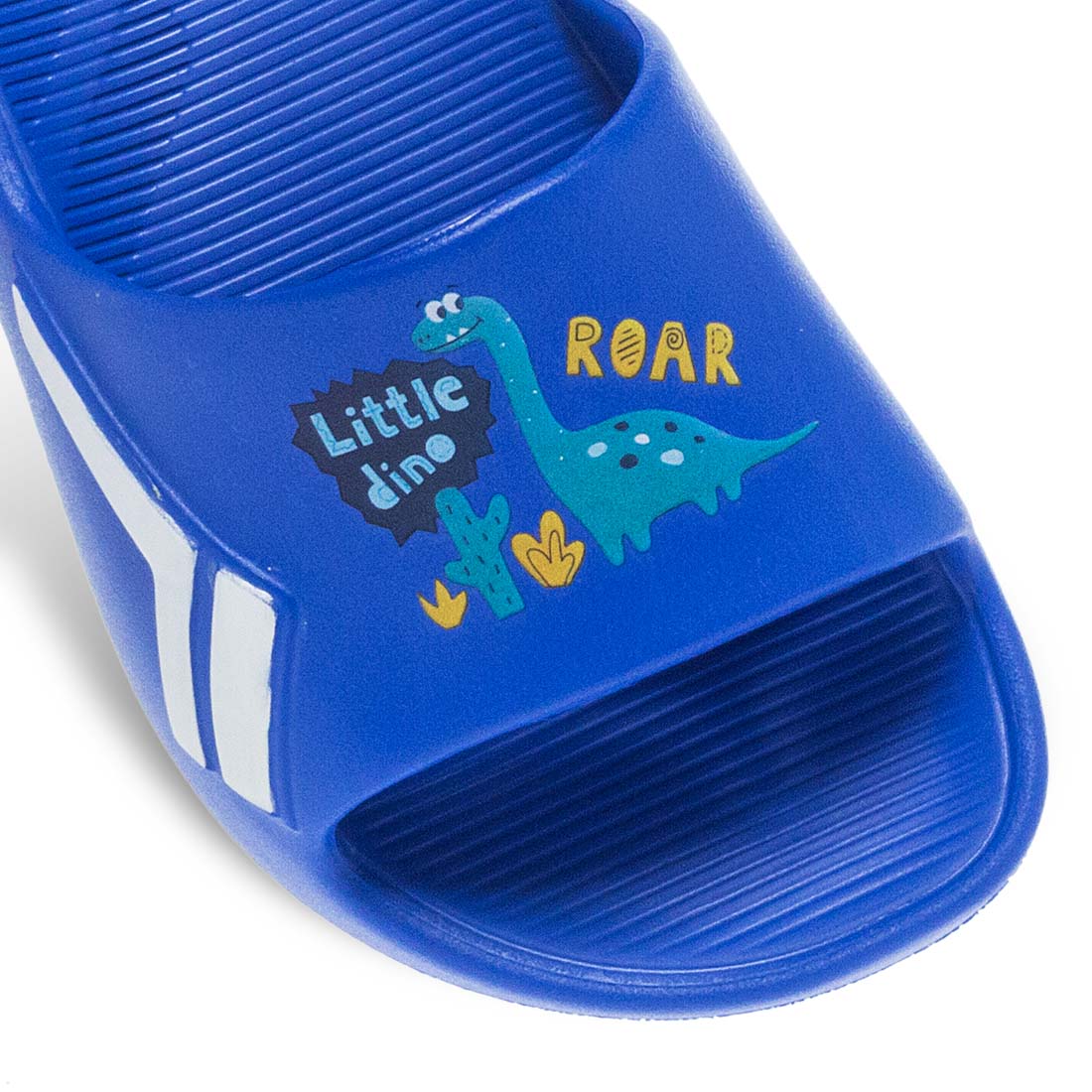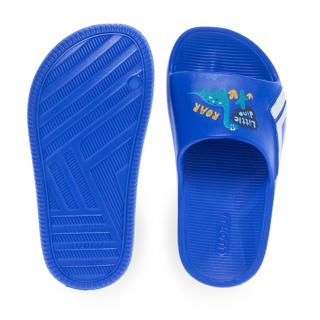 Printed slides wth dinosaurs for boys by brand Luofu. Soft insole. Comfortable and modern slides with wide strap. Easy to fit.