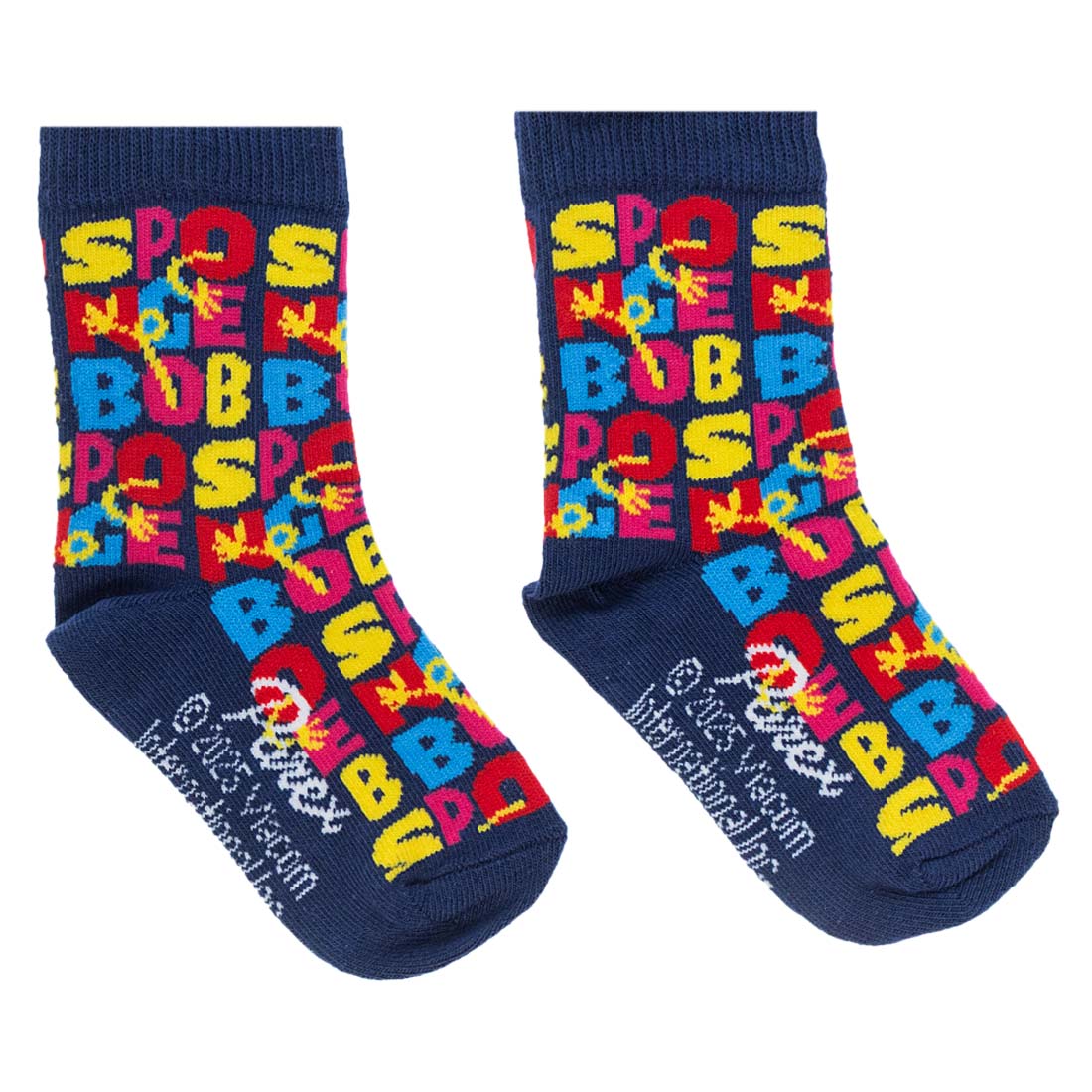 Kid''s socks by Spongebob. Colorful SpongeBob kids’ socks with bold letters and fun design. Perfect for playful outfits.
