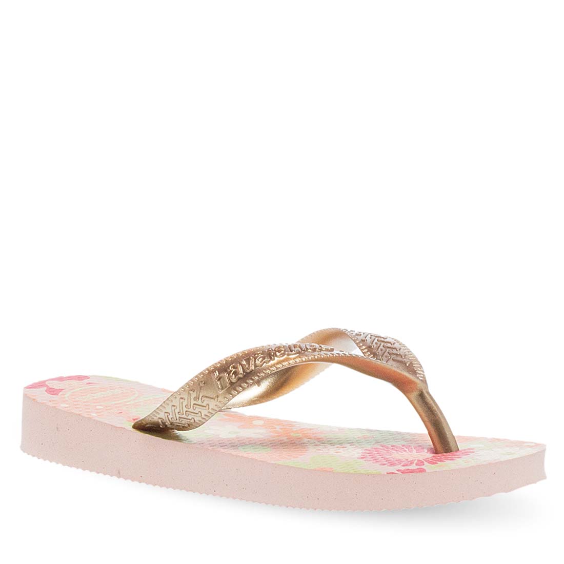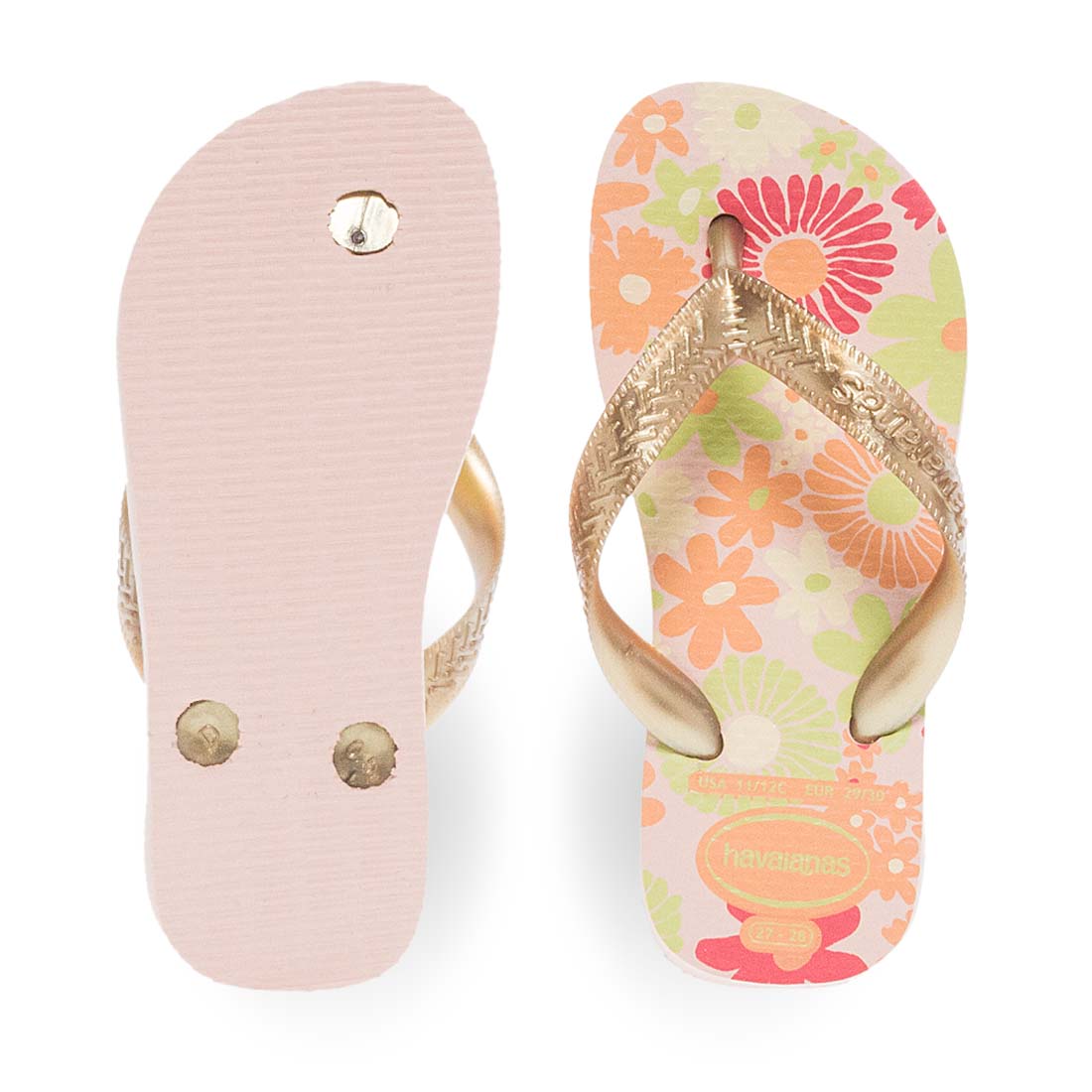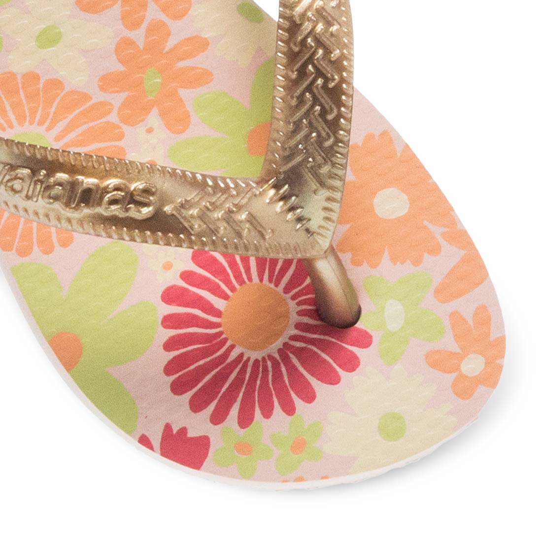 Havaianas printed flip flops for little girls, featuring a wider strap for extra grip and comfort. Colorful printed footbed. Flexible sole. Easy to wear.