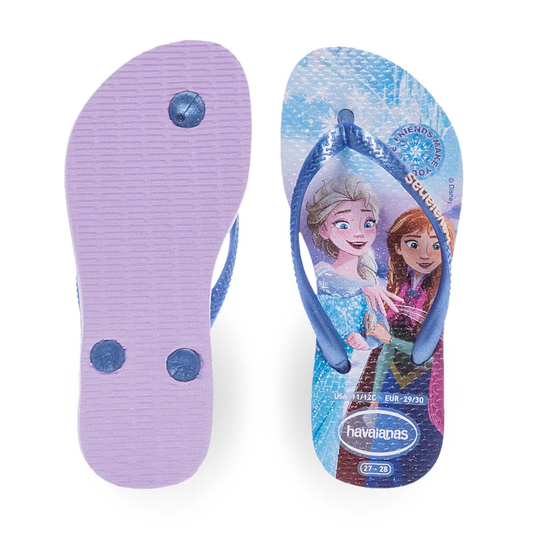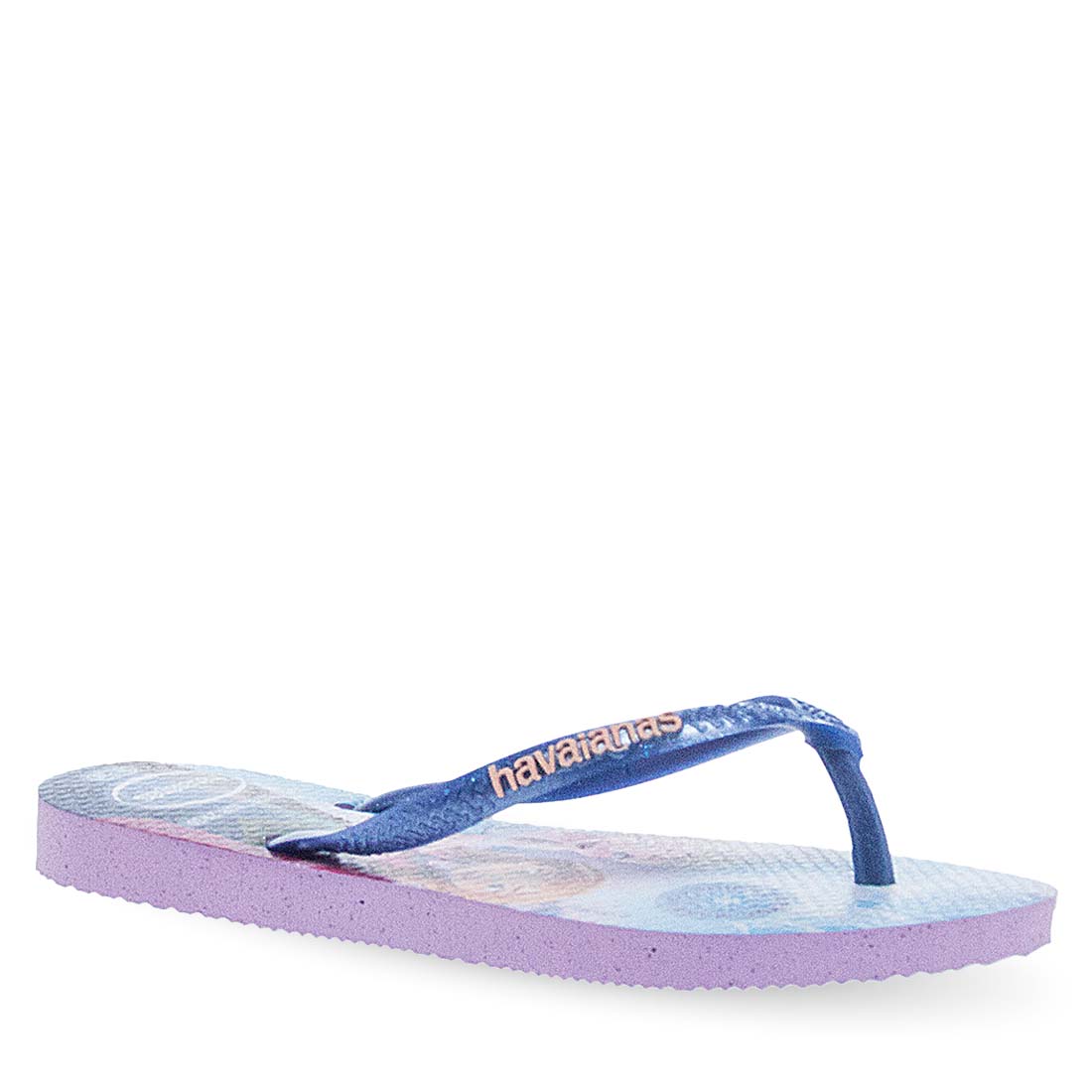 Purple flip-flops Havaianas kids slim princess that little girls will love. Comfortable footbed and flexible sole with frozen figure. Modern design. Easy to wear.