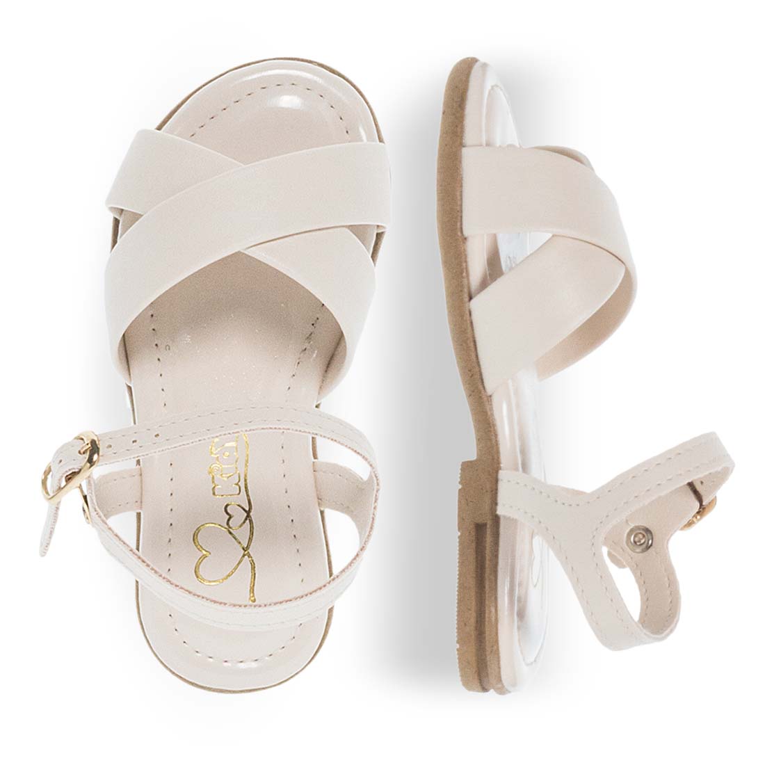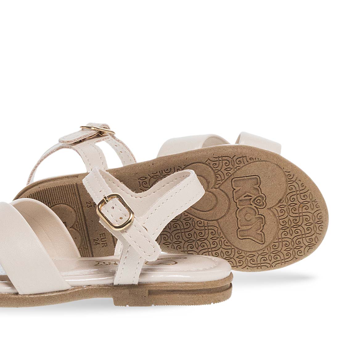White girl''s sandals Kidy. Made of synthetic leather. Cross straps on the upper. A good mix of comfort and style. Soft insole and Durable outsole.