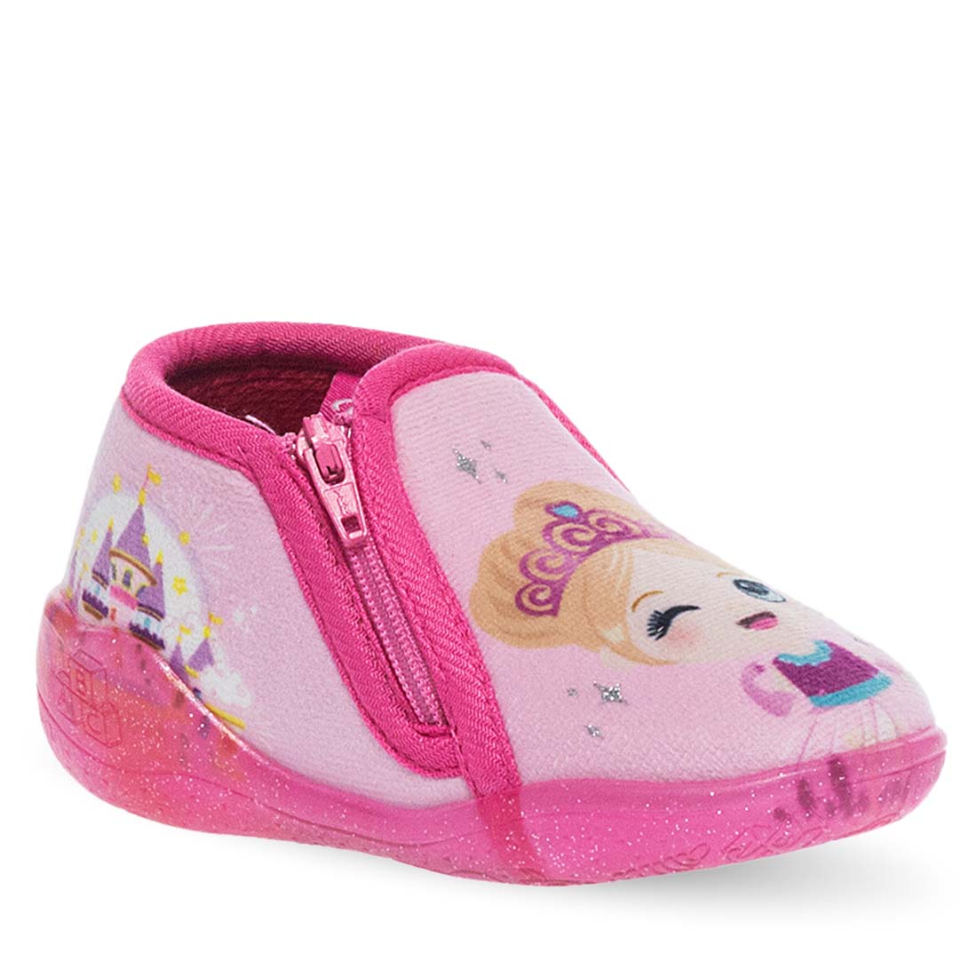 Kid''s house slippers by Parex in pink colour. Zip closure. Durable sole. Relaxed fit.