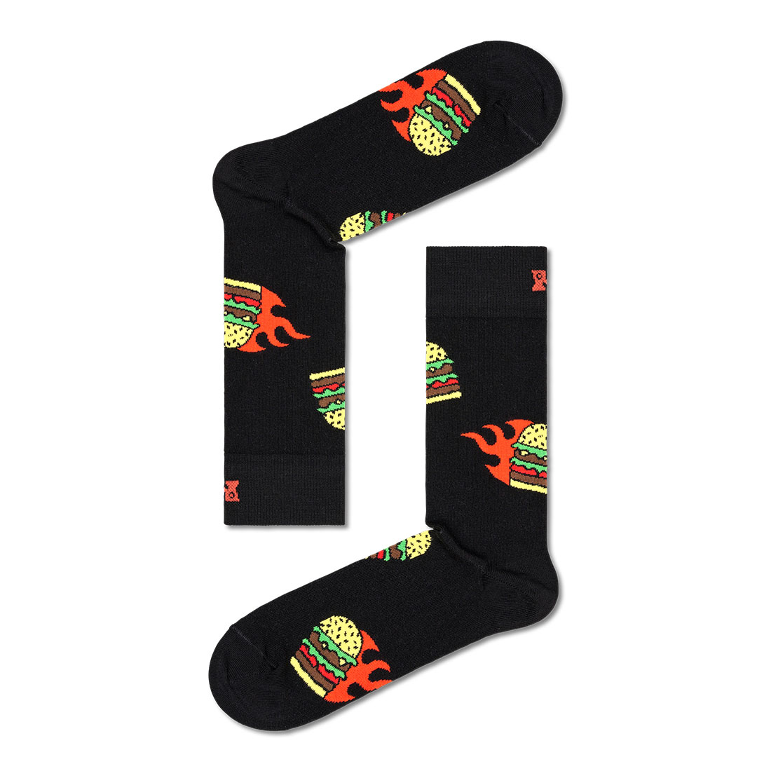 Men''s socks by Happy socks with burger prints. Colorful design made from combed cotton. Flaming burger socks.