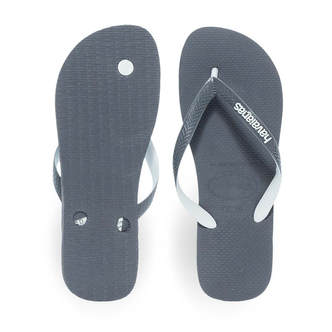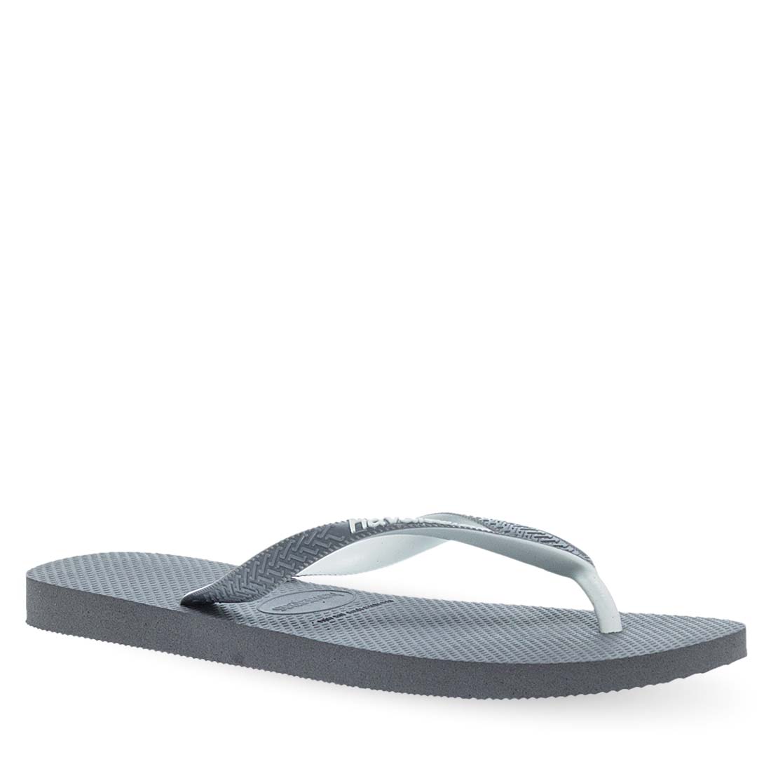 Modern flip flops for men with fork by new Havaianas Top Mix Fc collection. Resistant to water with a distinctive logo on the straps and sole. Soft footbed and flexible non-slip sole. Available in grey color.