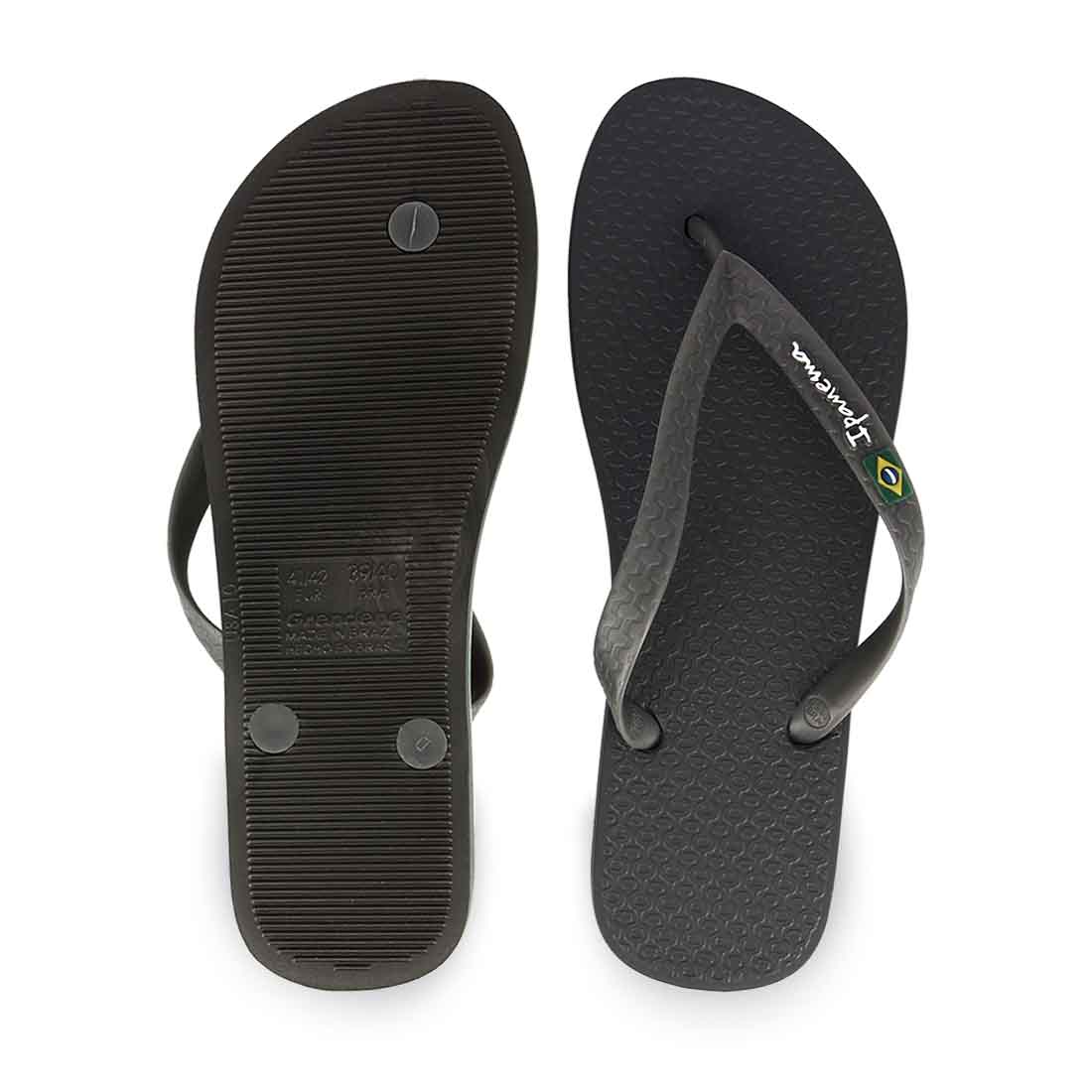 Flips flops by Ipanema. This timeless design by the brazilian brand is available in dark grey color. Flat design. Durable sole. Toe-post design.