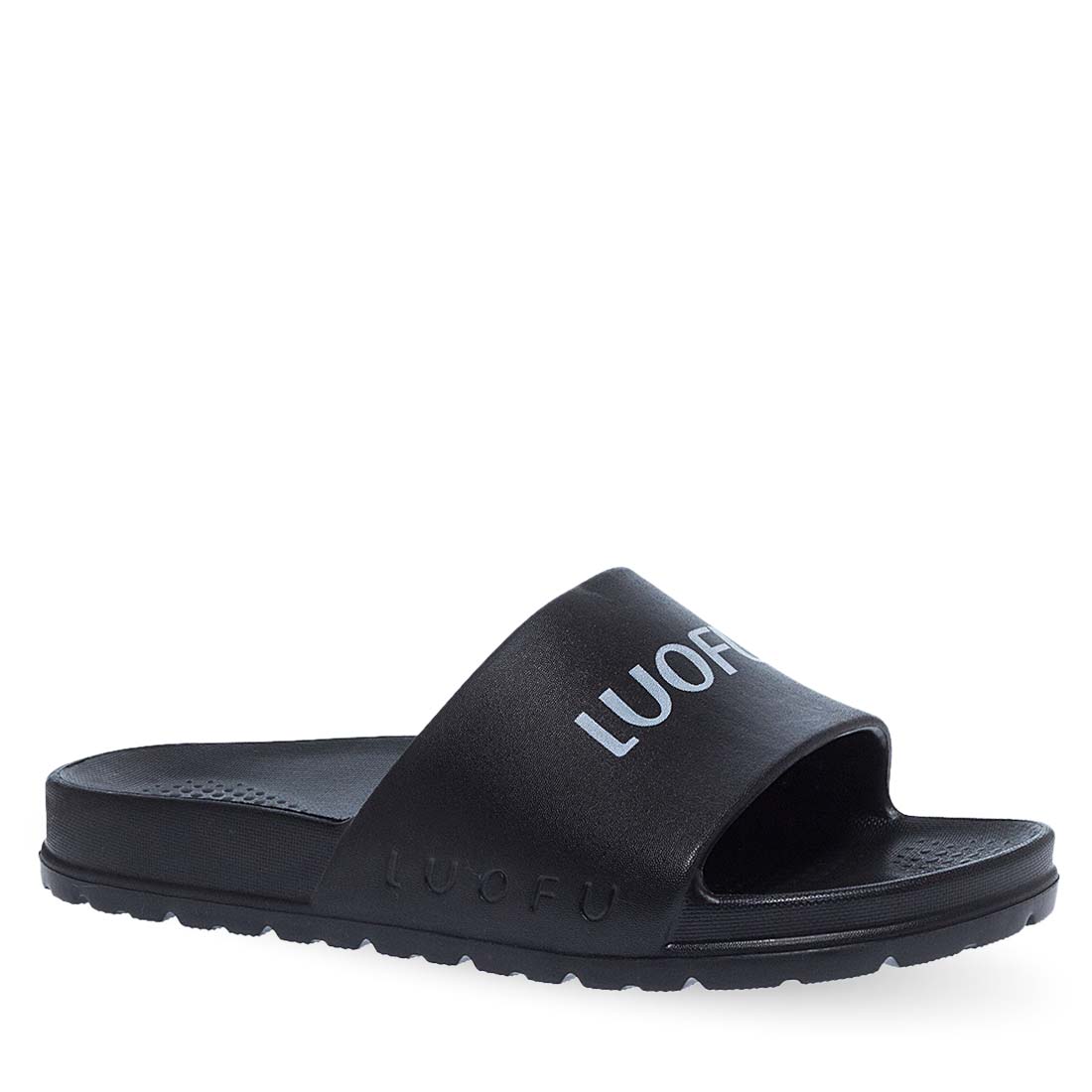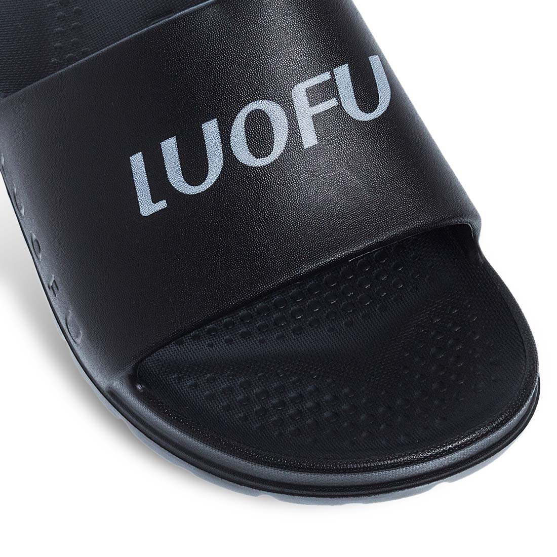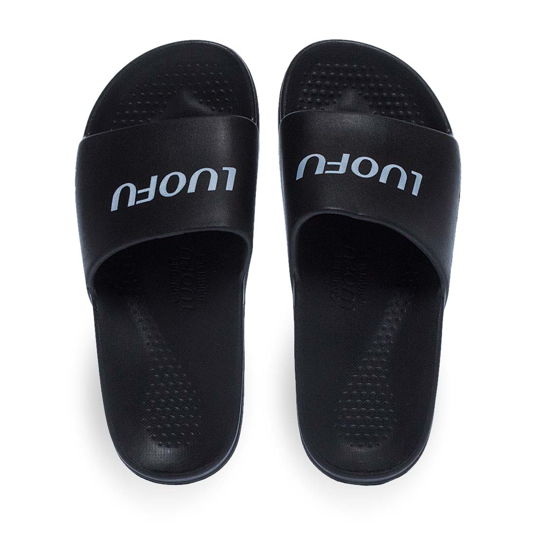 Luofu Cushioned Slides. Experience the ultimate in cozy comfort with these chunky slippers, perfect for a long summer. Printed brandname on top.