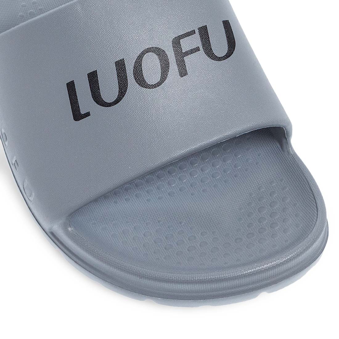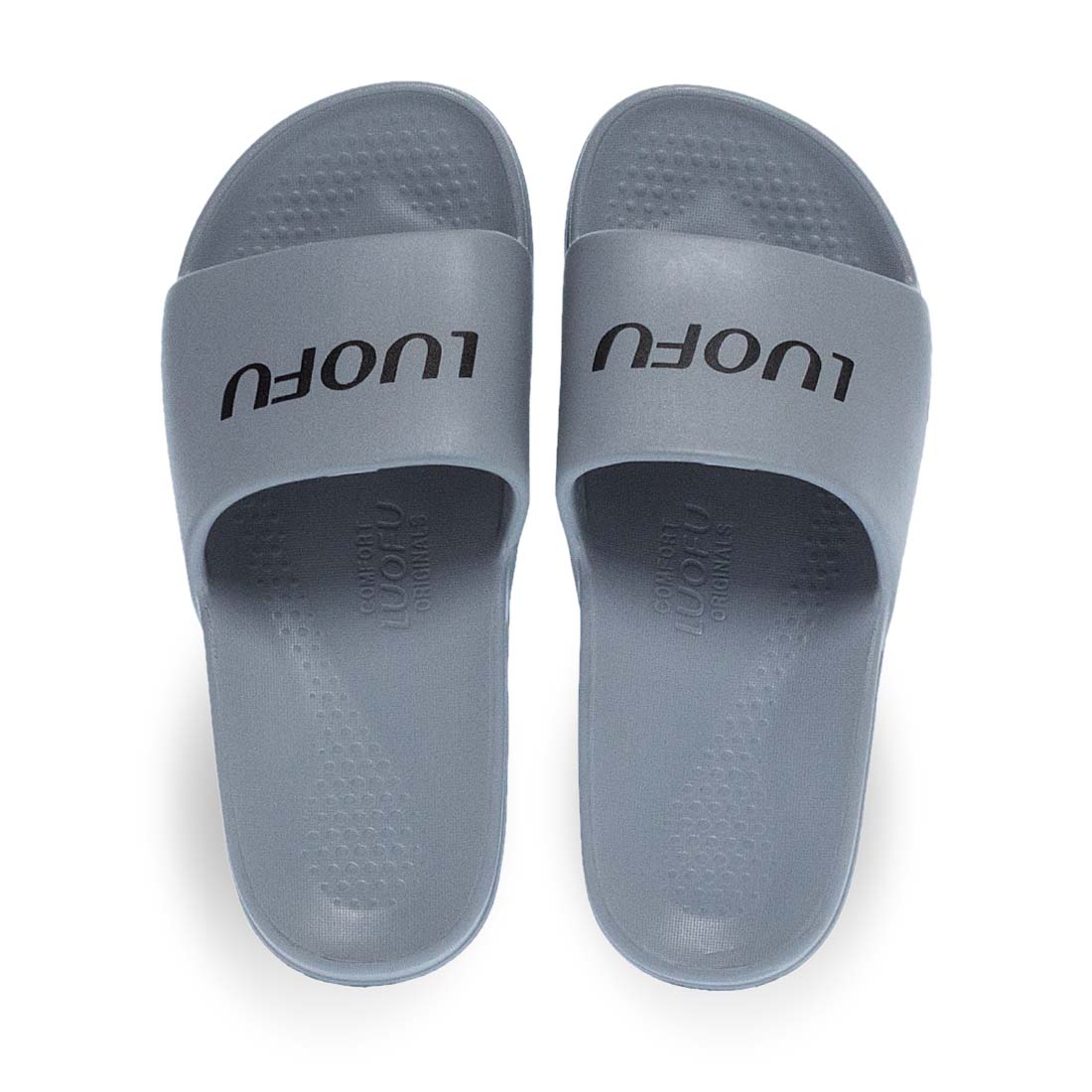 Luofu Cushioned Slides. Experience the ultimate in cozy comfort with these chunky slippers, perfect for a long summer. Printed brandname on top.