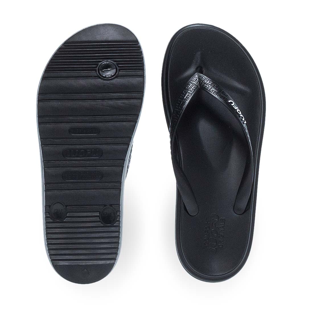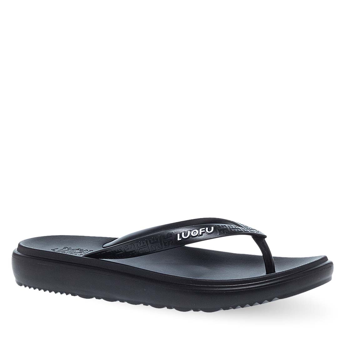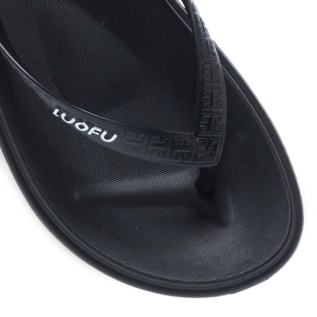 Super comfortable flip flops by Luofu. V-strap design. Made of plastic. Soft insole. Available in black and blue color.