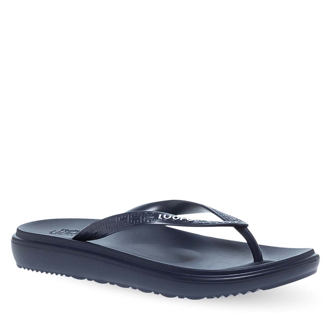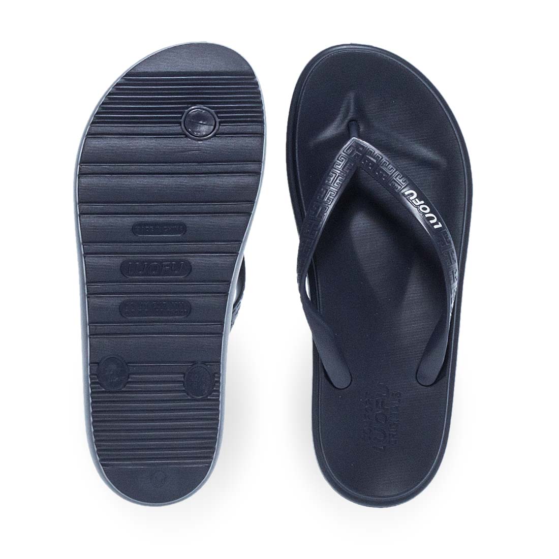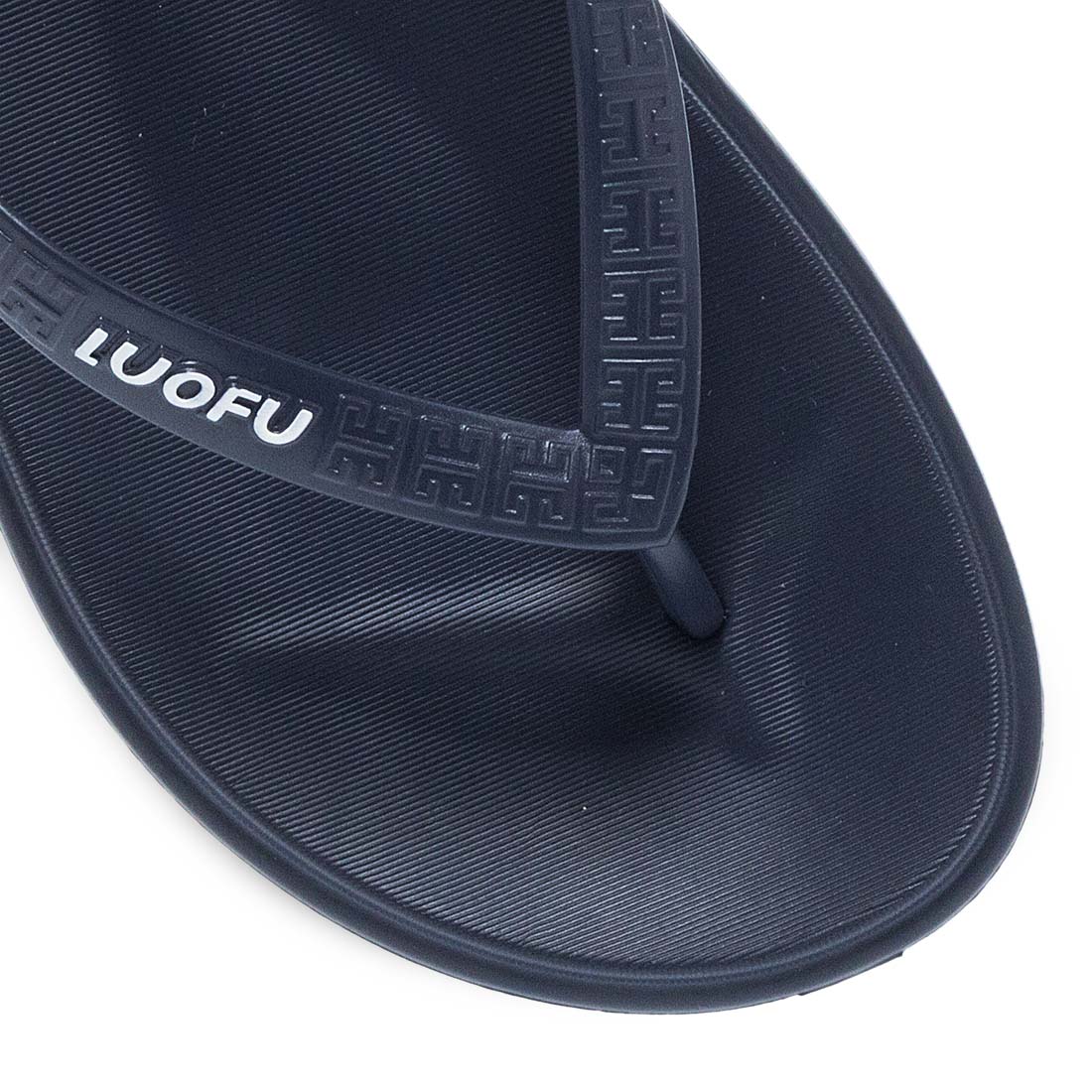 Super comfortable flip flops by Luofu. V-strap design. Made of plastic. Soft insole. Available in black and blue color.
