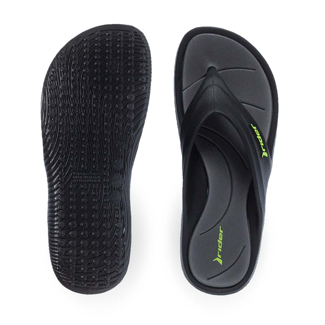 Fashionable flip flops by brand Rider. Stay one step ahead with this great pair of men''s beach flip flops. Excellent quality eco material. They have V-strap for stable steps. Extremely soft insole and stable non-slip sole. Men''s durable flip flops ideal for modern summer walks. Easy to fit.