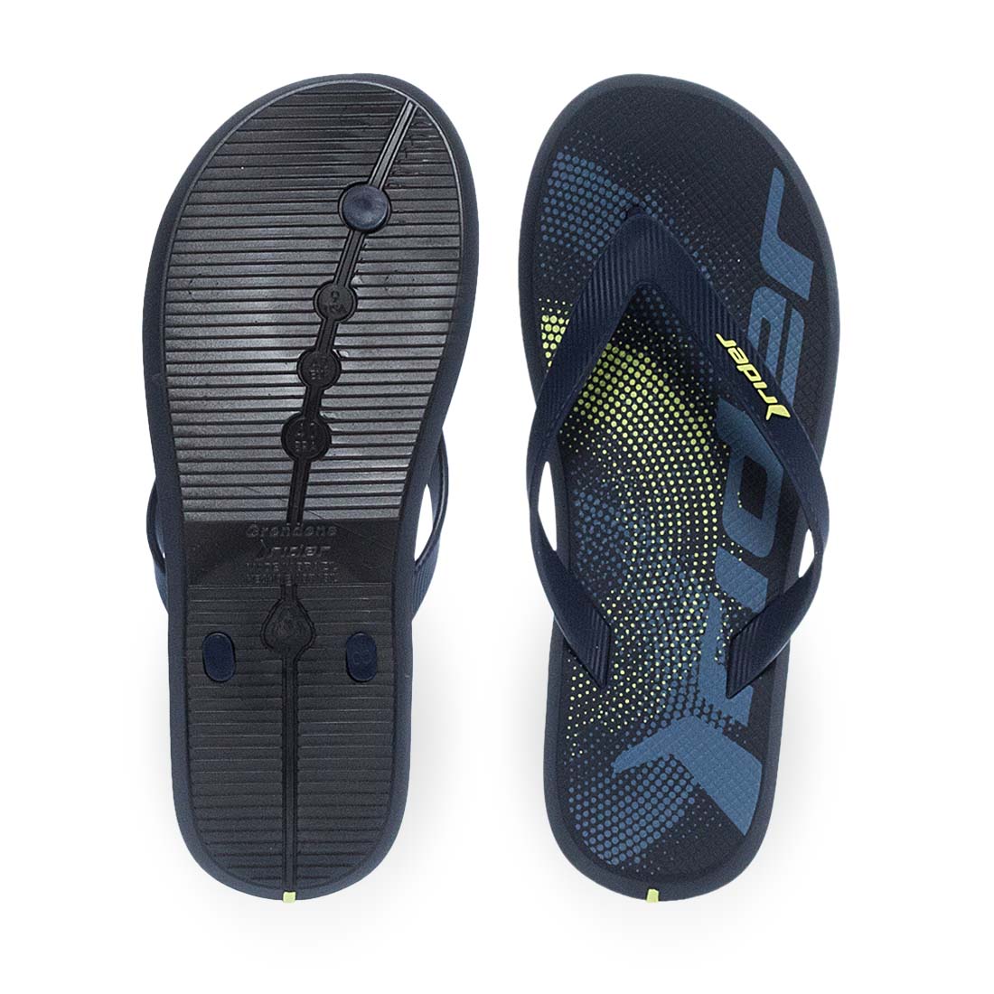 Enjoy summer days in these flexible flip flops in blue color by Rider. Antislide sole and durabe outsole. Modern and comfortable design. Easy to wear.
