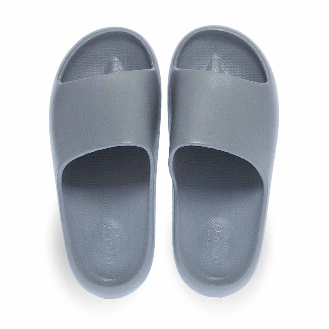Introducing Cushioned Slippers by Luofu. Enjoy the maximum comfort with these soft slides. Available in 4 colors. Chunky, non slip sole. Printed logo on top.