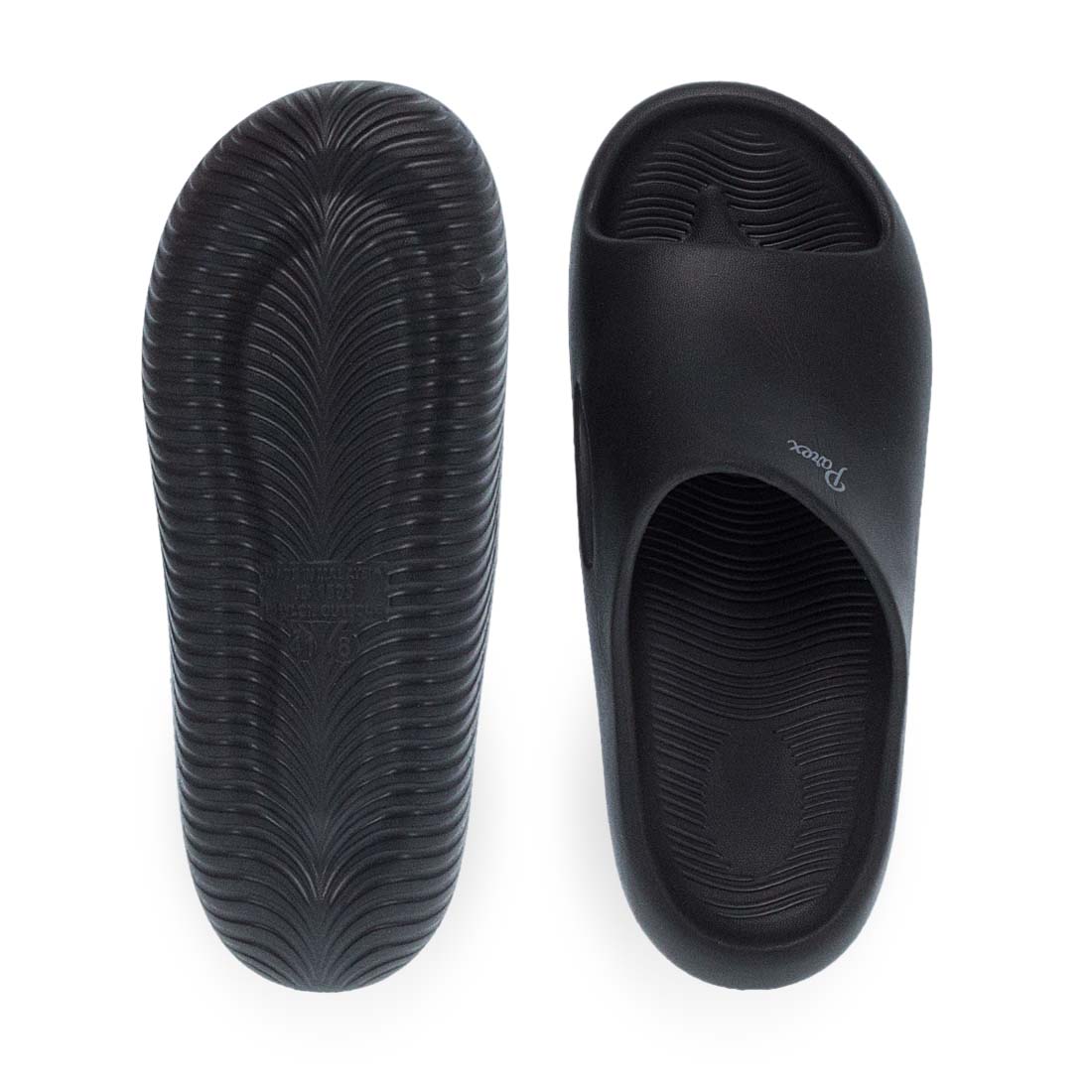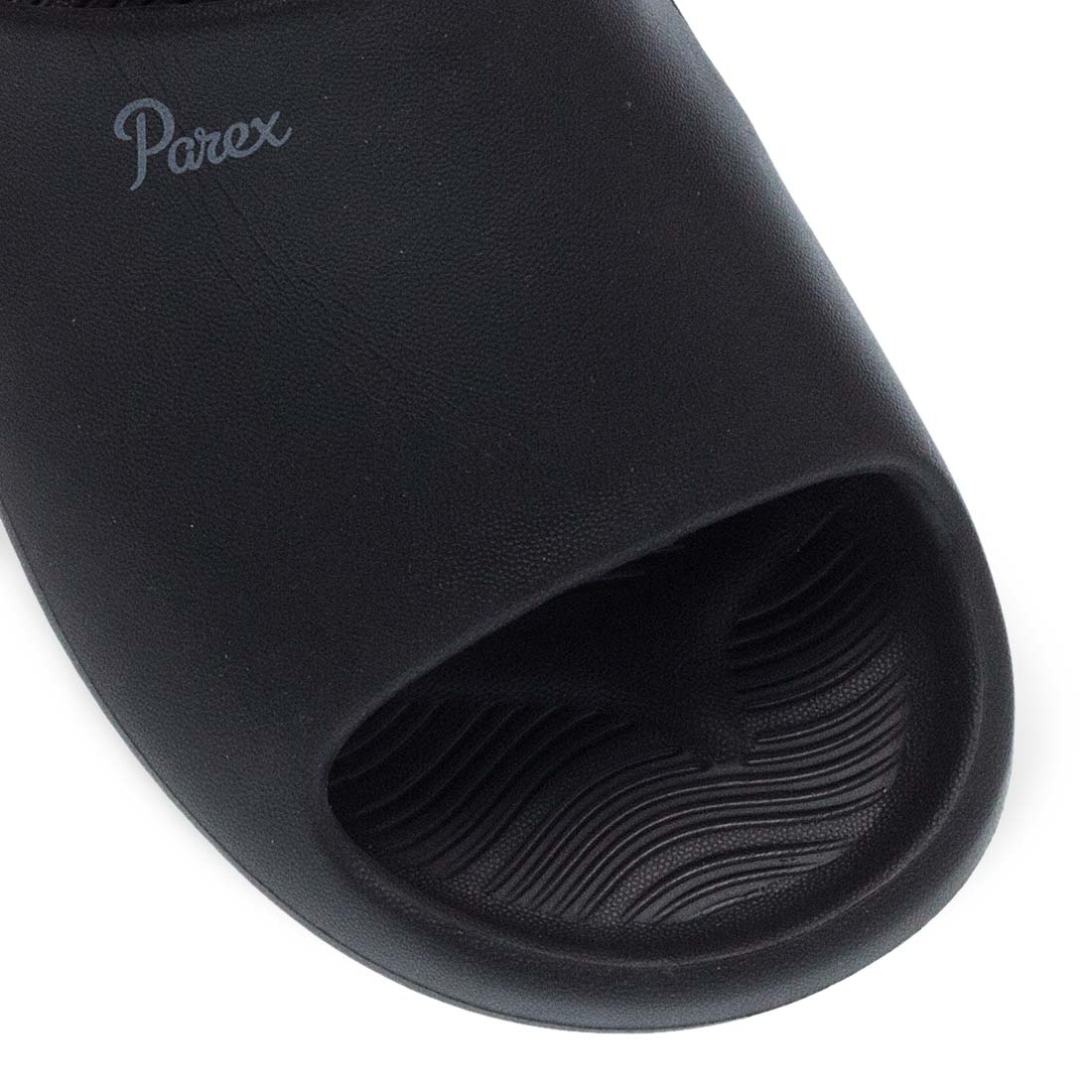 Comfortable slides designed with high level of quality and comfort by Parex. Monochrome design and easy to wear. Logo detail and easy to fit.