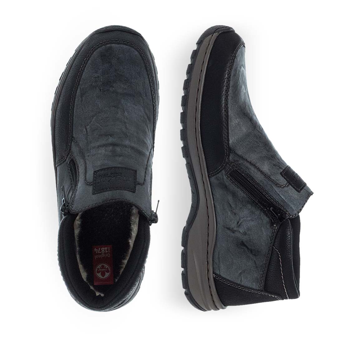 Another comfortable option for your everyday style are these men''s ankle boots by Rieker. Comfortable footbed and anti-vibration sole. Zip closure.