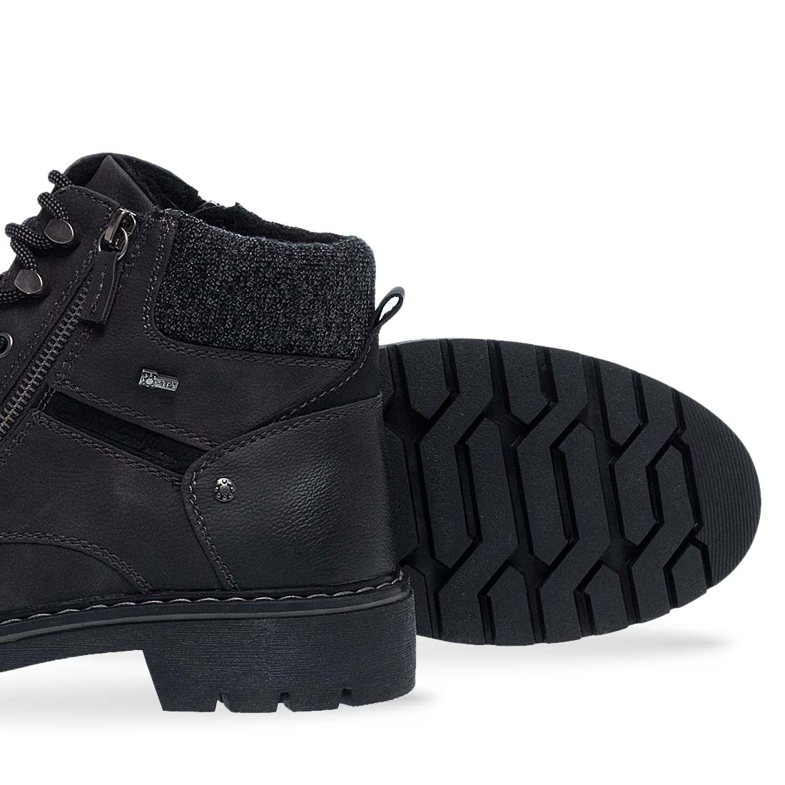 Men''s boots by Relife. Men’s boots by Relife in black and grey combination. Made of synthetic leather with textile lining and supportive insole. Feature lace-up front and side zipper for convenient wear and a stable stride.